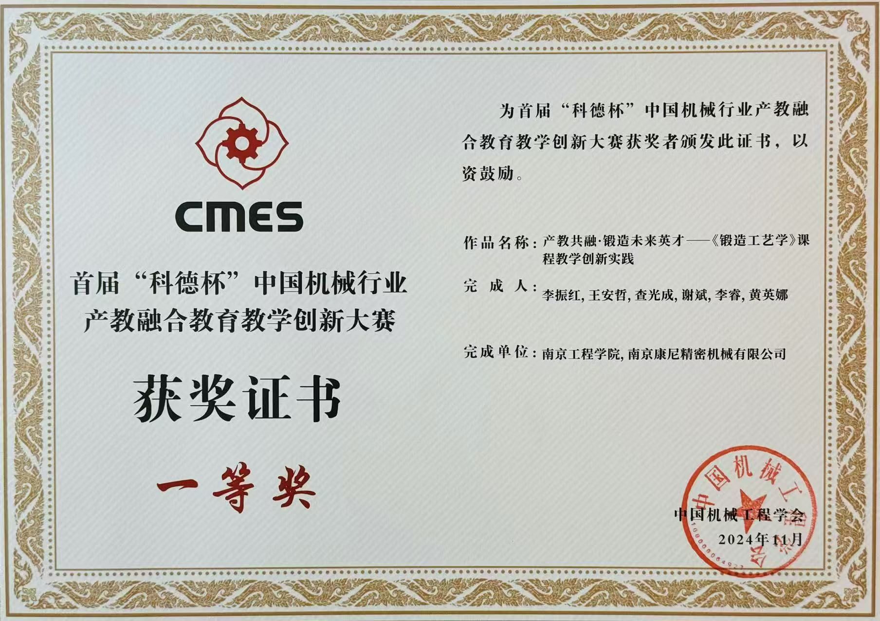 我校在首届中国机械行业产教融合教育教学创新大赛全国总决赛中荣获一等奖
