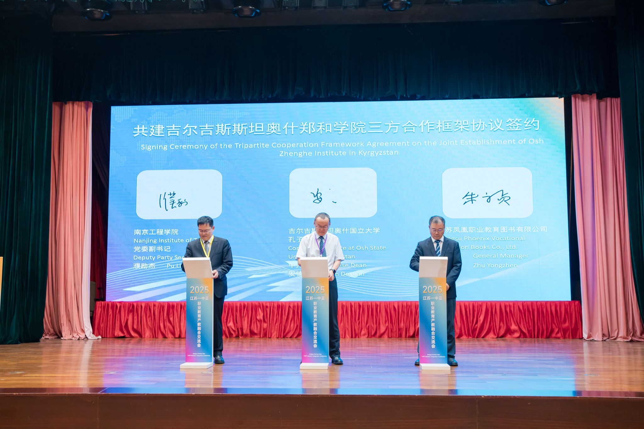 凯发承办首届江苏-中亚职业教育产教融合交流会5月29日至30日,江苏-中亚职业教育产教融合交流会在南京举行。会议由我校联合江苏凤凰职业教育图书有限公司等单位共同承办,吸引了来自中国、哈萨克斯坦、乌兹别克斯坦、吉尔吉斯斯坦等近150位政府、院校以及企业代表参会。党委副书记濮励杰,党委常委、宣传部部长陈建华,以及国际合作与交流处相关人员出席会议。活动现场,江苏-中亚产教融合联盟正式成立,标志着江苏校企政行协同“出海”进入新阶段。作为联盟主要发起单位,... 2025.06.03