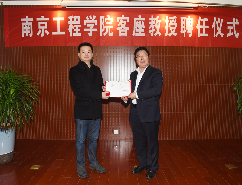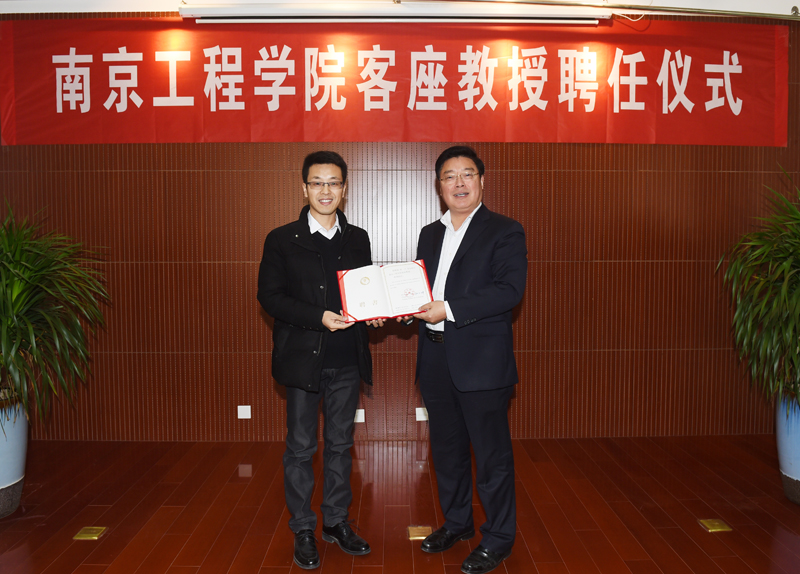 江宁区委统战部副部长、工商联党组书记、副主席张钧,江宁区工商联副主席房文钦、江宁高新区副总经理彭启超;我校人事处、学工处负责人出席聘任仪式。