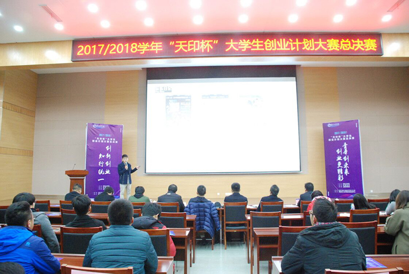 2017年12月29日下午,我校2017/2018学年“天印杯”创业计划大赛在至美苑·艺术设计楼影视动漫中心举行。校学生工作处负责人、各二级学院相关负责老师及200余名学生等观摩了此次大赛。