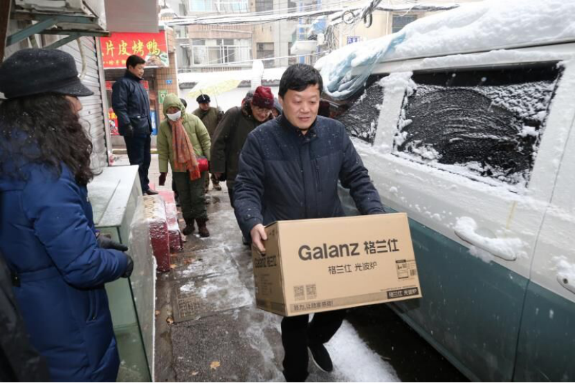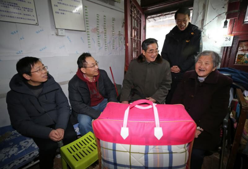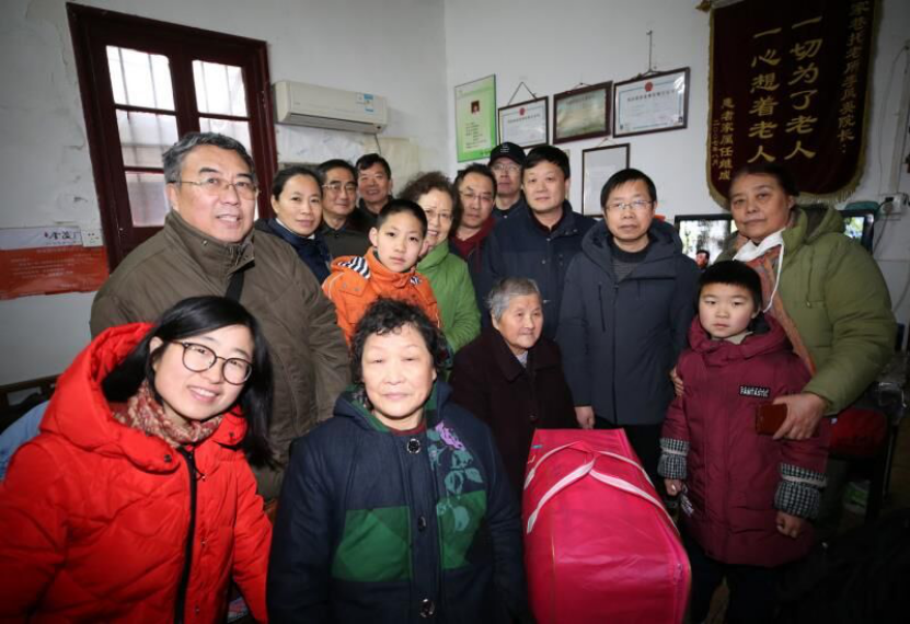 连日来,南京普降大雪。我校民进凯发k8官网支部会员一行冒着纷飞的雪花,带着崭新的床单、棉被,面粉、水果和微波炉等慰问品,来到挹江门街道戴家巷社区托老所,给那里的孤寡老人带去新年慰问与新春祝福,受到社区的好评和点赞。