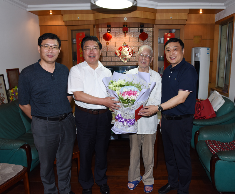 7月5日上午,位于清江花苑的我校退休老教师向崇痕家中,花香四溢,欢声笑语,校党委书记史国君、院长史金飞、副院长张仰飞等校领导来到这里,共同为老人家庆祝一百岁期颐生日。校领导们为老人家送上鲜花、慰问金和生日蛋糕,祝福老人健康长寿,叮嘱老人注意保重身体。