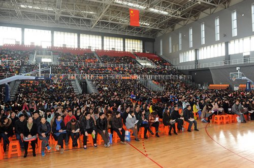 3月11日下午,校党委书记吴建华在天健苑?体育中心为我校大学生骨干作了题为“致青春——人生的磨砺与追问”的主题报告。张仰飞副院长,校党委宣传部,学工处、团委全体人员,各院(中心)分管学生工作的负责人、学工战线上的一百多位老师以及2500余名学生骨干共同聆听了报告会。报告会由校团委书记陈建华主持。