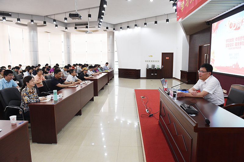 根据校党委关于党史学习教育的统一部署,5月28日下午,在行政北楼二楼多功能厅,校党委常委、副院长张仰飞以“学习文献 体悟思想 坚定信仰 爱党奉献”为题开展党史教育专题党课,学工线全体人员及部分学生代表200余人聆听了此次党课。