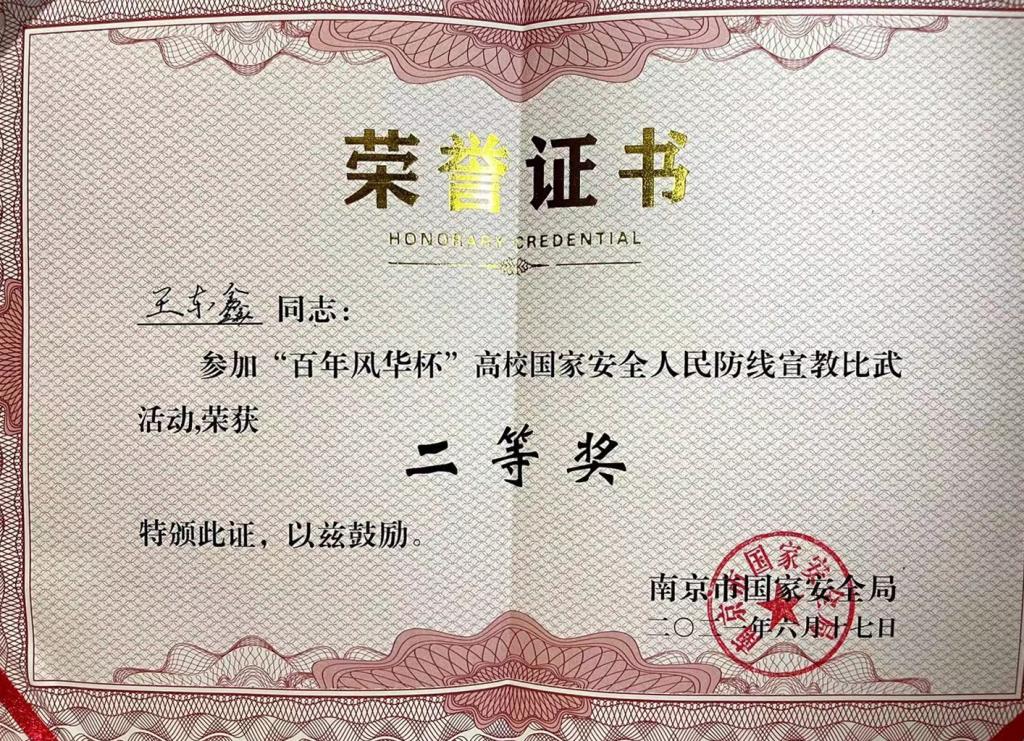 近日,在南京市国家安全局主办的“百年风华杯”高校国家安全人民防线宣教比武决赛中,我校材料科学与凯发辅导员王东鑫老师讲授《强化安全意识,提升安全素养》,在29名优秀选手中脱颖而出,荣获二等奖。