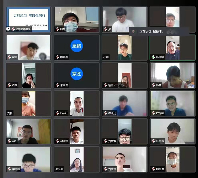 分享战“疫”志愿者故事、感受时代思想伟力、防疫安全指导、线上学习方法交流………8月18日,软件201班“第二班主任”、校党委常委、副院长杨征宇老师走进软件201班以“力行担当,与时代同行”为主题的云端班会,将疫情防控和思想政治教育相结合,希望班级同学们为打赢这场疫情阻击战力行担当,同时为特殊开学季做好准备。