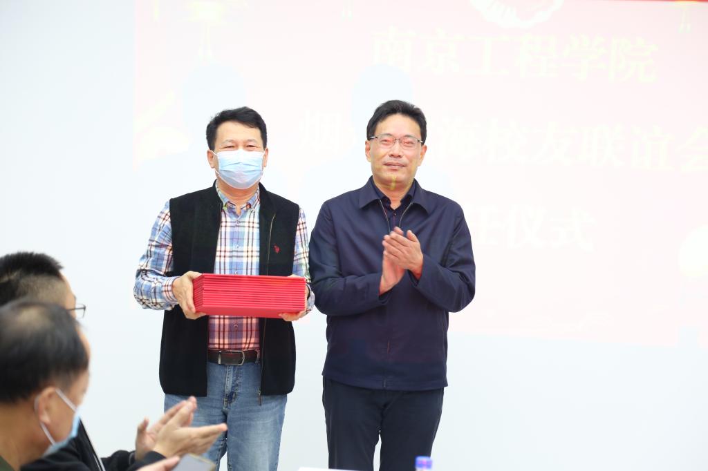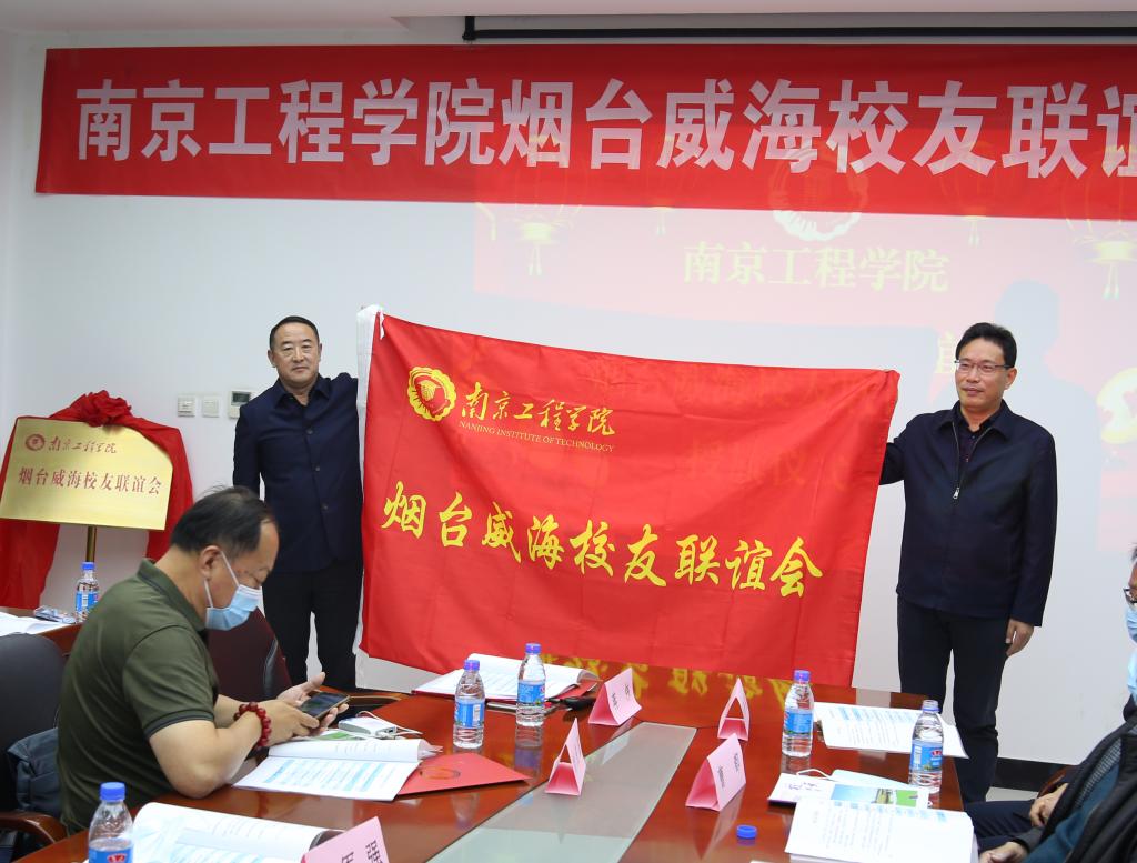 张仰飞副院长向烟台威海校友联谊会授予会旗。