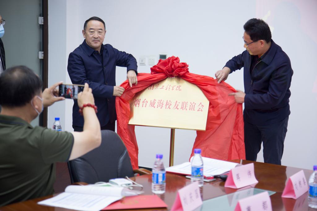 张仰飞副院长与烟台威海校友联谊会会长孙军强校友共同为烟台威海校友联谊会揭牌。