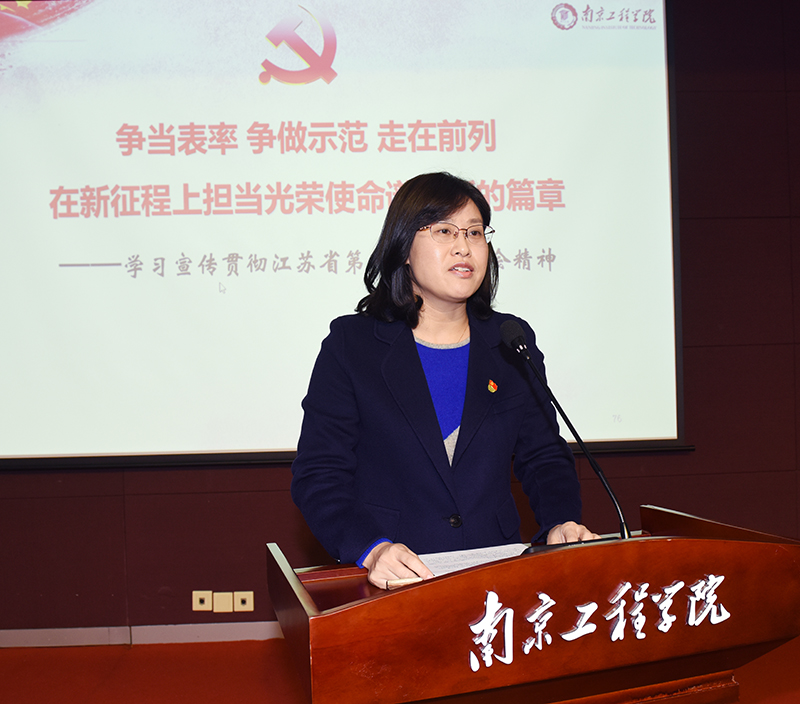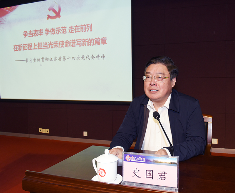 12月17日下午,我校在至勤楼·行政中心多功能厅举行学习宣传贯彻江苏省第十四次党代会精神报告会。党委书记史国君主持报告会并作总结讲话,党委副书记、院长史金飞作为党代表做专题报告。全体校领导、中层干部、党员师生代表等200余人聆听报告。