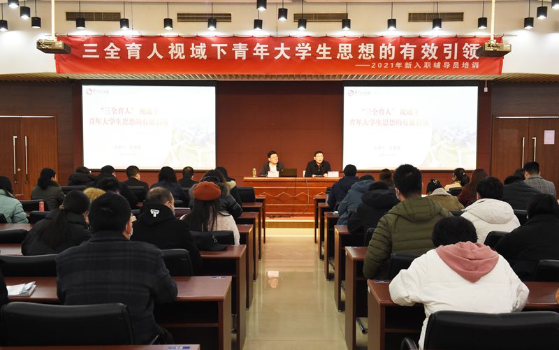 “三全育人”综合改革是加强改进新形势下高校思想政治工作、全面落实立德树人根本任务的战略举措。作为高校辅导员,如何在 “三全育人”视域下找准自身的角色定位,做好思想引领工作,增强人才培养的实效性?1月12日下午,校党委书记史国君以“三全育人视域下青年大学生思想的有效引领”为题,为我校学生工作队伍作思政工作专题报告。党委常委、副院长张仰飞主持报告会。