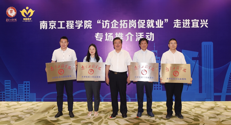 在与会人员的共同见证下,史国君书记向江苏宜兴德融科技有限公司、江苏锐成机械有限公司、江苏亨鑫科技有限公司、中辰电缆股份有限公司颁发了毕业生就业基地铜牌。