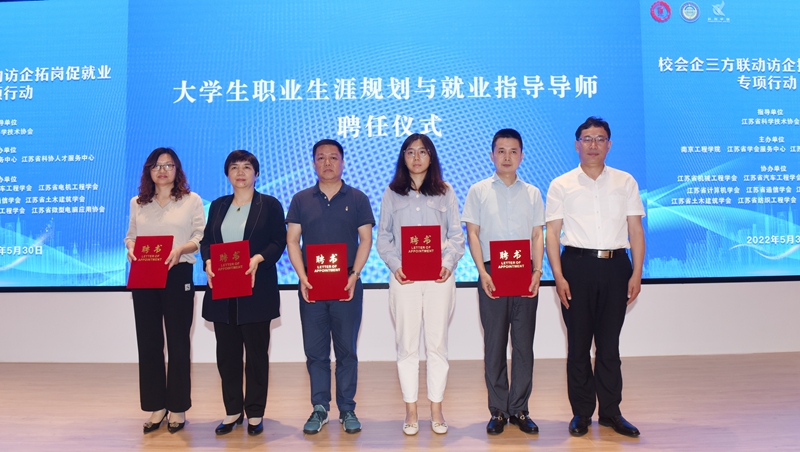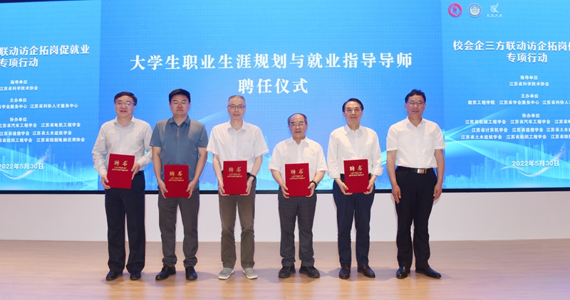 为进一步贯彻落实党中央、国务院关于高校毕业生就业工作的决策部署,5月30日,在全国科技工作者日这天,校党委副书记、院长史金飞率队开展“访企拓岗促就业”专项行动,与江苏省科学技术协会各学会及会员企业代表座谈交流,向与会科技工作者致以节日祝福,并推介我校毕业生,开启校会企联动促就业新模式。党委常委、副院长张仰飞,学生工作处、相关学院(中心)负责人参加活动。