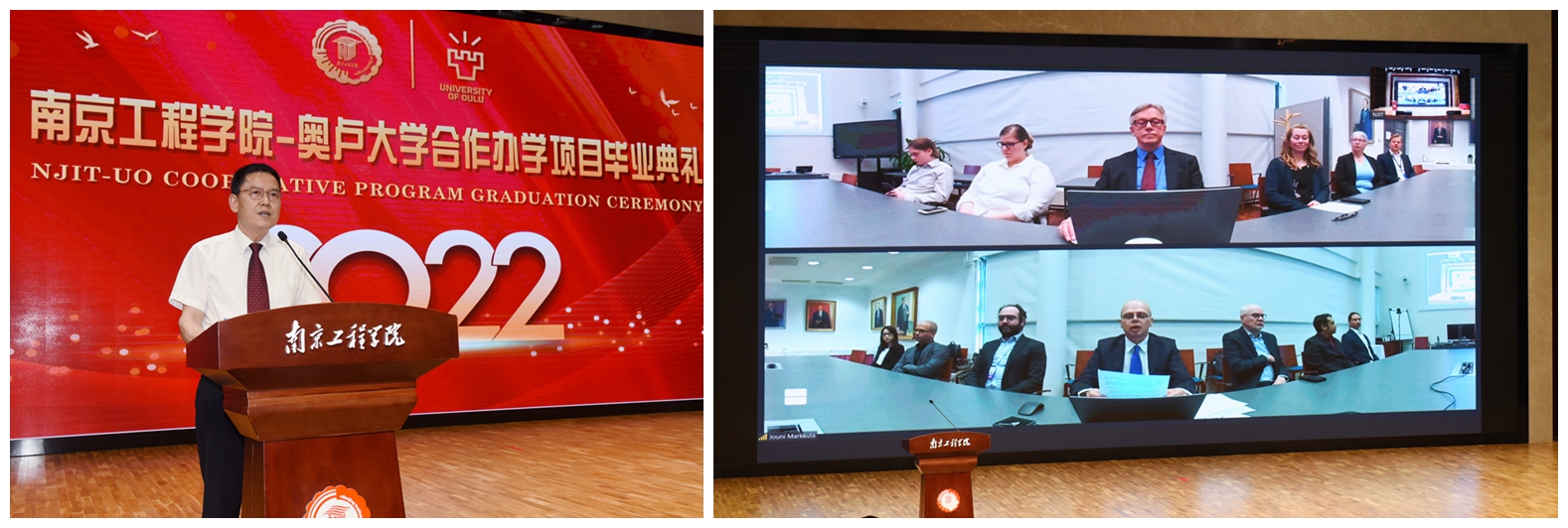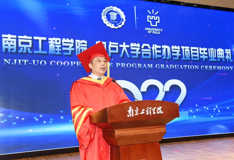 6月8日下午,凯发k8官网—奥卢大学合作办学项目首届毕业生毕业典礼暨学位授予仪式在科创园天印会议中心学术报告厅举行。校党委书记史国君,党委副书记、院长史金飞,党委副书记濮励杰,中芬合作办学项目联合管理委员会、教学与质量监控委员会、学生管理委员会的成员和关心支持该项目的特邀嘉宾和教师代表,中芬合作办学项目各年级学生参加了本次活动。由于疫情原因,奥卢大学的领导和教师无法来到现场,他们通过云端连线表达对毕业生的祝福。