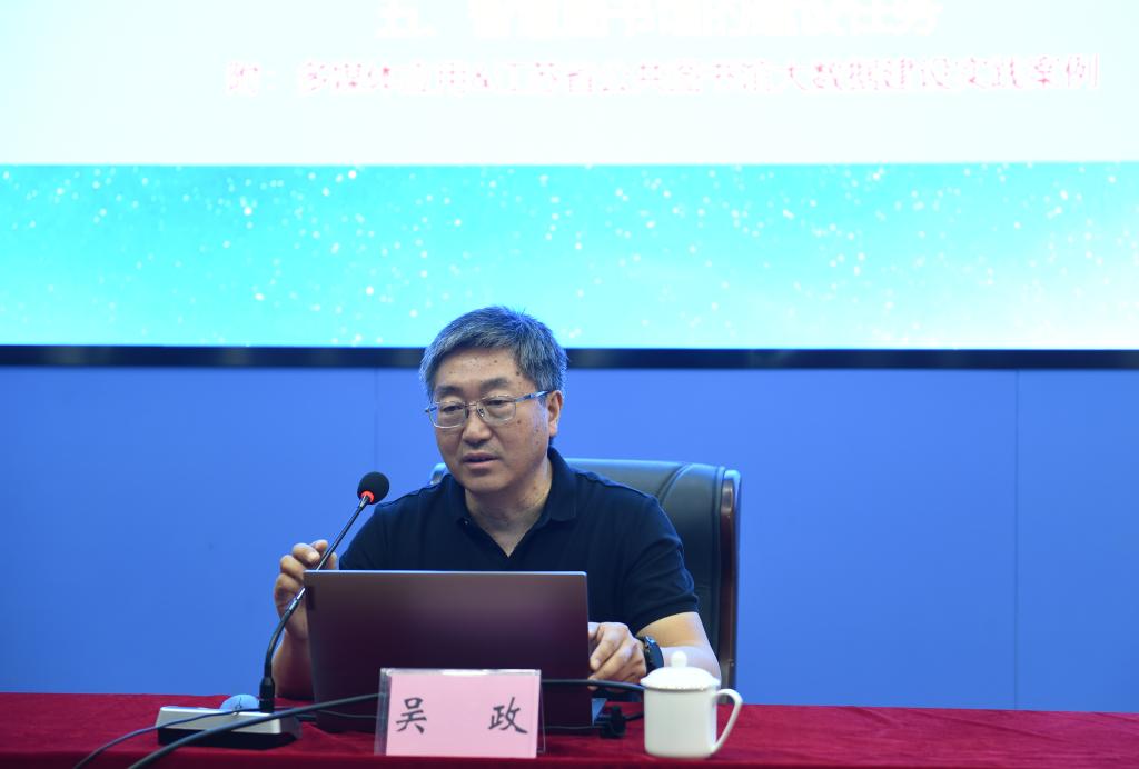 签约仪式结束后,南京图书馆副馆长吴政作了题为《智慧图书馆的本质、特征及实现路径》的讲座。吴政副馆长主要介绍了在大数据时代,“互联网+”背景下的智慧图书馆的创新形式。他内容详实地为馆员们讲解了智慧图书馆的发展现状、智慧本质、六大特征、功能分析和建设任务五个方面,循序渐进地阐述了智慧图书馆是将新一代信息技术普遍应用于图书馆的各个方面,目的是使图书馆具备全面智能化、大数据支撑、智慧化集成、系统化建设等全面、综合的智慧能力,最终在整体上达到一种智慧状态。他对未来智慧图书馆的建设任务提出了初步的想法和建议。