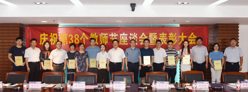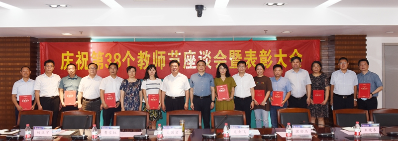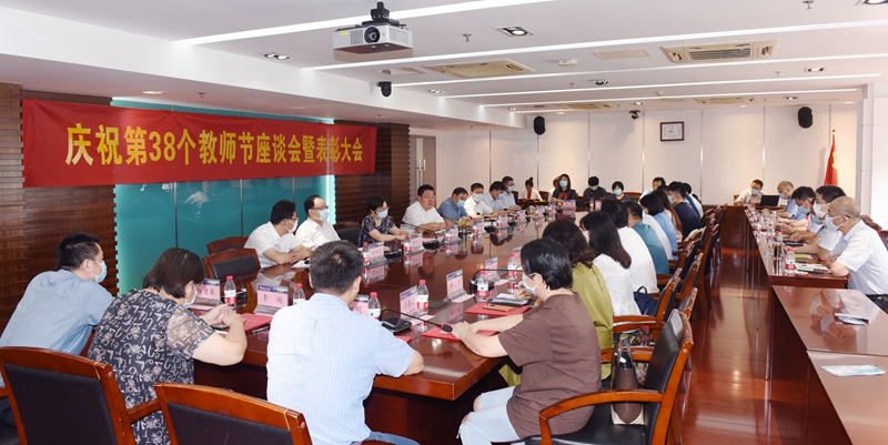 迎接党的二十大,培根铸魂育新人。9月9日上午,我校在至勤楼·行政中心北楼303会议室召开庆祝第38个教师节座谈会暨表彰大会。全体校领导、部分职能部门主要负责人、教师代表齐聚一堂,共同庆祝自己的节日,共话凯发美好愿景。会议由党委副书记、院长史金飞主持。