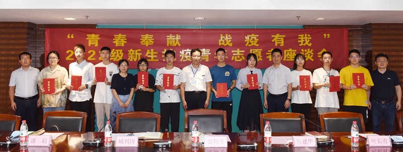 青春同心,战“疫”有我。2022年暑期,南工程有640多名新生在各地担任抗疫志愿服务者,用自己的努力和汗水守护一方平安。报到当天下午,10名抗疫志愿者代表齐聚一堂,分享抗疫故事,弘扬抗疫精神,凝聚前行力量。“扛起责任担当,青春才会闪光”“ 作为新时代的中国青年,要将志愿服务的接力棒持续传递下去”……一句句誓言朴实却有力量。校党委常委、副院长张仰飞来到座谈会现场,为同学们送上敬意与祝福,勉励大家把这段参与抗疫志愿服务的经历转化为拼搏奋进、历练担当的青春记忆,主动作为,敢于创新,在民族复兴的赛道上跑出南工程青年的最好成绩。会上宣读了关于表彰2022级新生抗疫青年志愿服务先进个人的决定,与会领导为新生代表颁发证书。