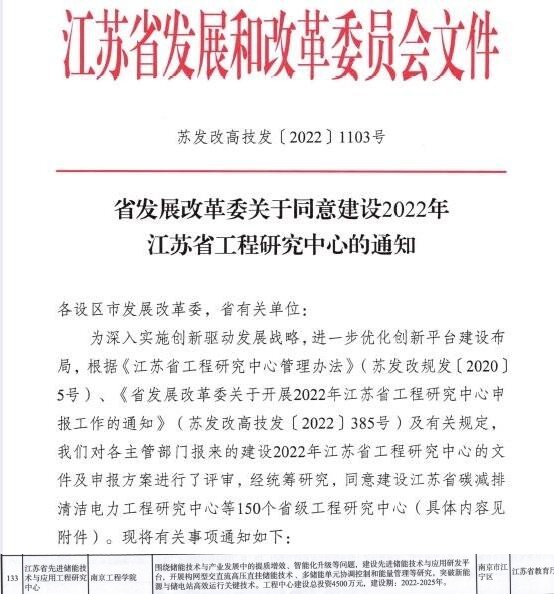 近日,江苏省发展和改革委员会发布《关于同意建设2022年江苏省工程研究中心的通知》,由我校组织申报的“江苏省先进储能技术与应用工程研究中心”项目脱颖而出,喜获立项,这也是我校连续第六年获得该类别项目立项,彰显着近年来凯发推动平台和团队建设方面取得的显著成效。