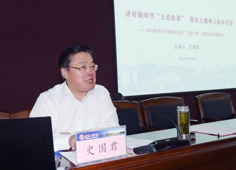 史书记从 “‘大思政课’建设的内涵要义”“‘大思政课’的方案解读”“‘大思政课’的实践路径”三个方面,探讨了如何讲好新时代“大思政课”,并为进一步开展“三进三知”专题实践活动,推动我校思想政治工作高质量发展提供了行动指南。