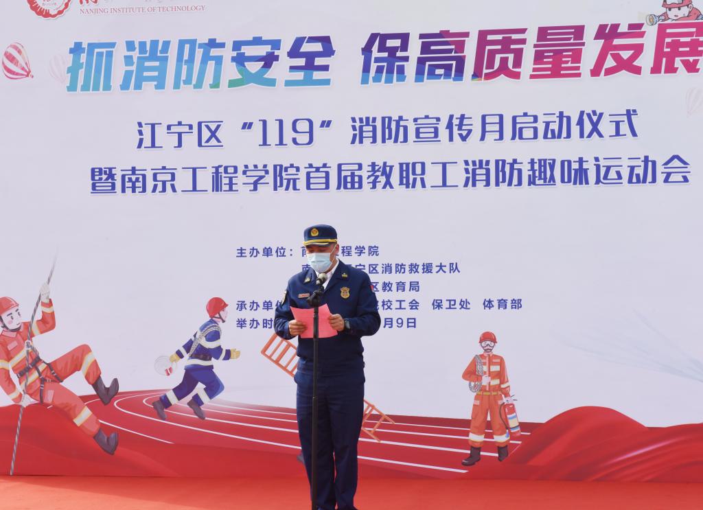 11月9日是第31个全国消防日,为不断推进高质量平安校园建设,提高教职工的消防安全意识,当天下午,江宁区“119”消防宣传月启动仪式暨凯发k8官网首届教职工消防趣味运动会在凯发体育公园举行。