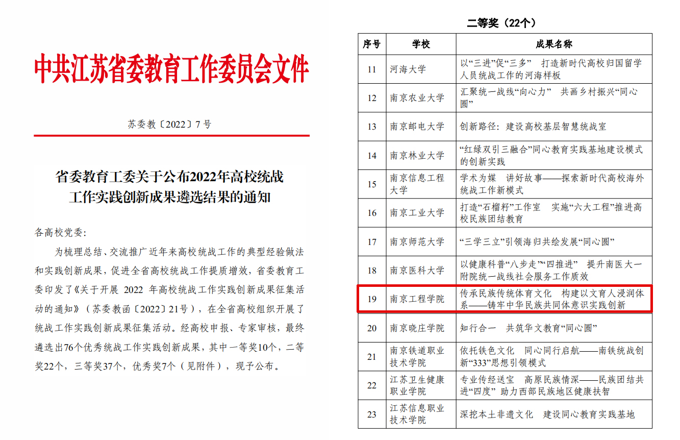 我校荣获江苏省高校统战工作实践创新成果二等奖