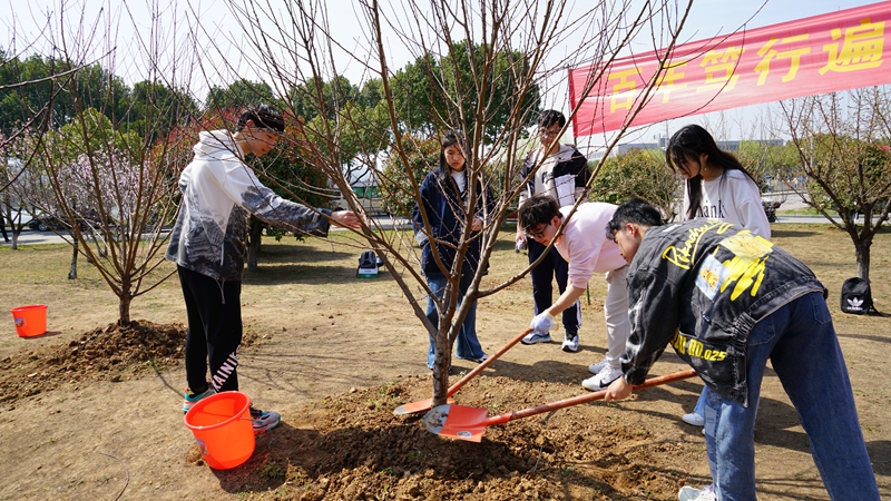 春回大地万物苏,植树添绿正当时。3月10日上午,在第45个植树节即将到来之际,全体在校校领导带领参加后勤劳动教育课程的同学们,在桃李园种植紫叶碧桃,以劳动磨砺心智,以实践美化校园。