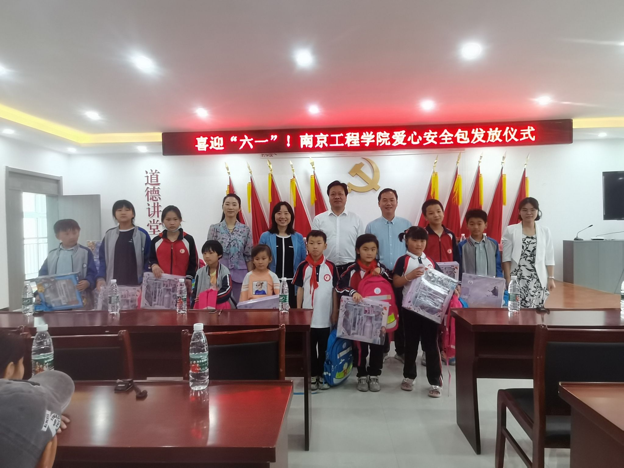 “六一”儿童节前,泗洪县双沟镇雪五村的35位小朋友都收到了一套爱心安全包,里面有安全防护书包一个、安全教育图书两本、学习文具一套、饮水杯一个和儿童体育跳绳一根。这是我校为响应江苏省妇女儿童福利基金会发起的“我助妇儿康·与爱同行”捐赠爱心安全包活动的倡议,积极与派驻帮促干部联系,根据帮促村实际,主动认购了35套安全爱心包,助力乡村振兴。