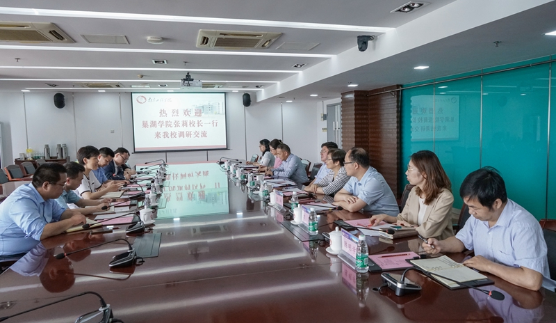 6月7日上午,巢湖学院张莉校长带队来校考察调研,就师资队伍建设、教师年度和聘期考核、绩效分配、目标管理考核、本科教育教学审核评估以及招生和双创教育等相关问题进行专项调研。我校党委书记史国君在至勤楼·行政中心北303会议室热情接待了来宾,党委副书记、副院长曹雪虹及党委办公室、校长办公室、发展与对外合作处、人事处、人才工作办公室、教务处、教学质量管理与评估处等相关职能部门负责人参加座谈会。