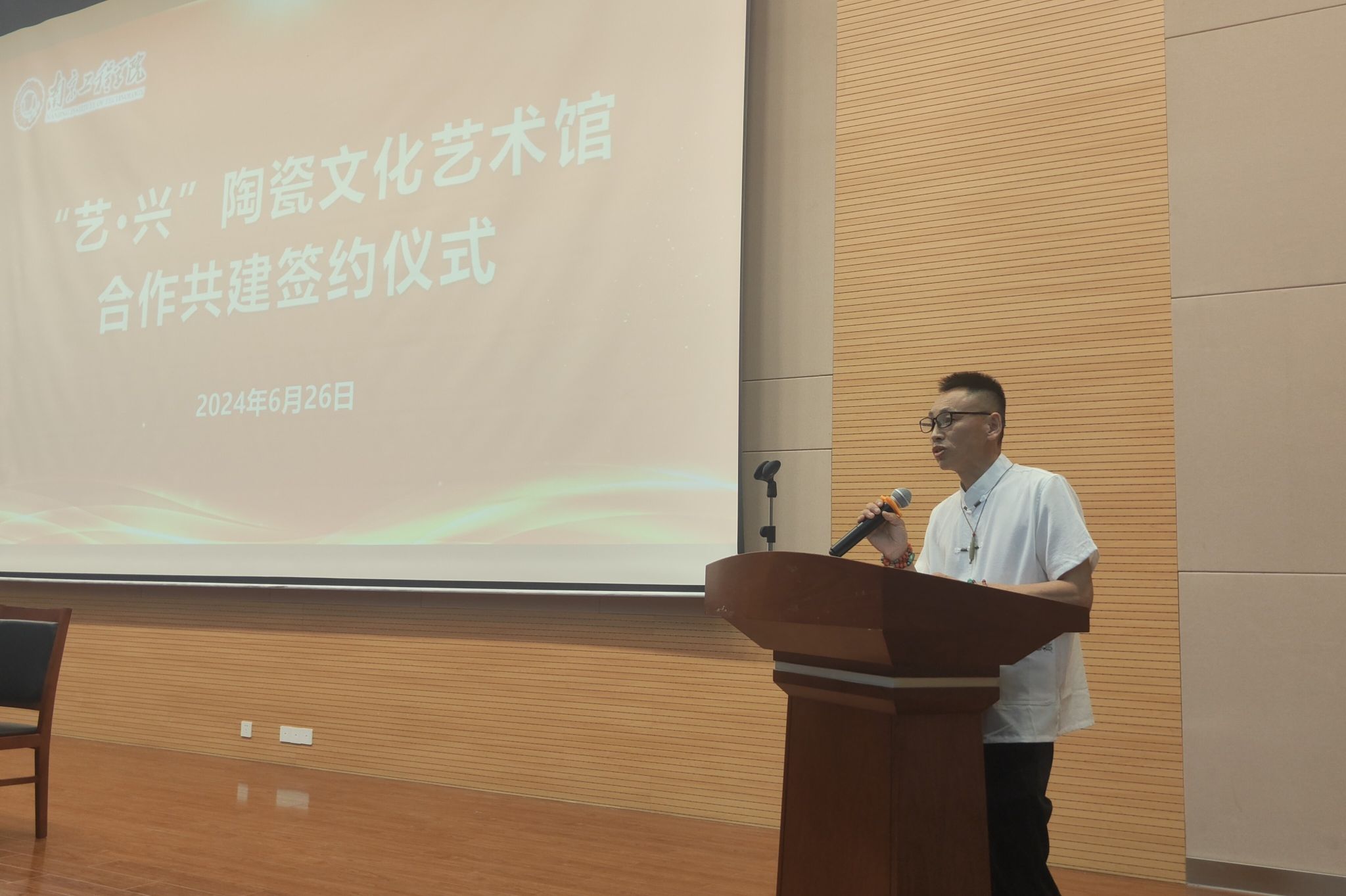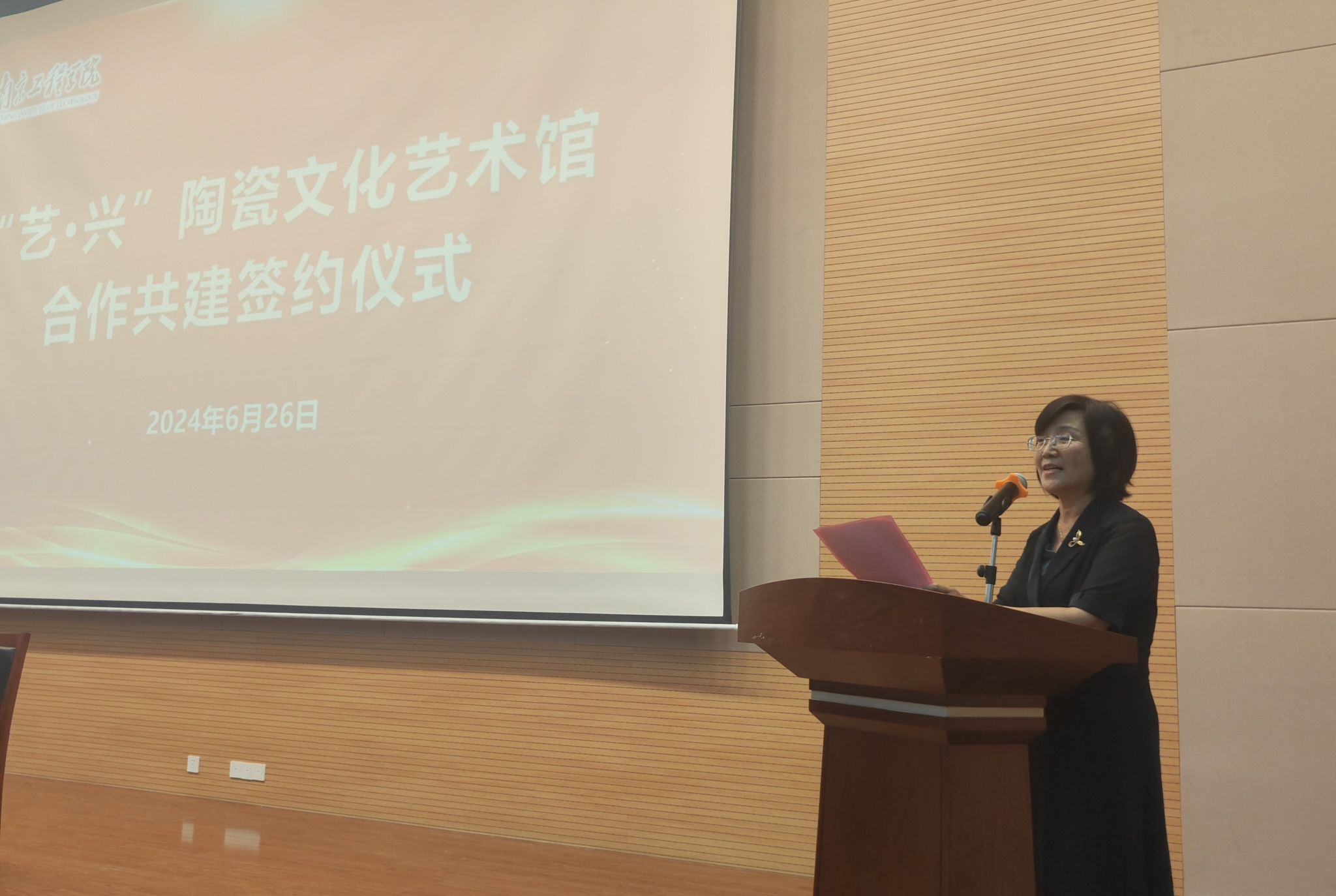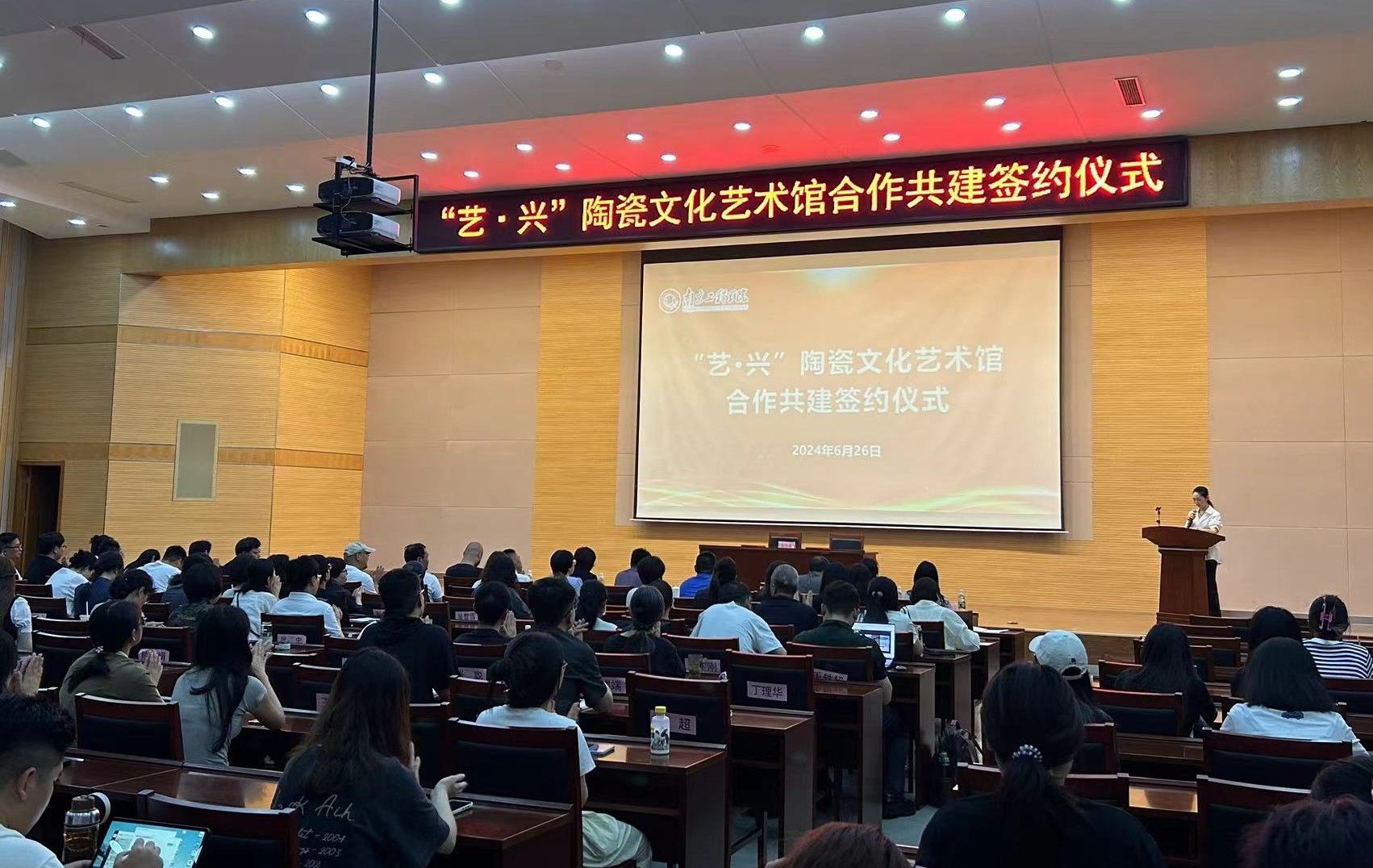 6月26日下午,“艺·兴”陶瓷文化艺术馆合作共建签约仪式在我校举行。党委常委、副校长汪群,南京景泓智能制造技术研究院院长王明龙出席活动并讲话,对外合作处负责人、艺术与设计学院党政负责人及师生代表参加活动。