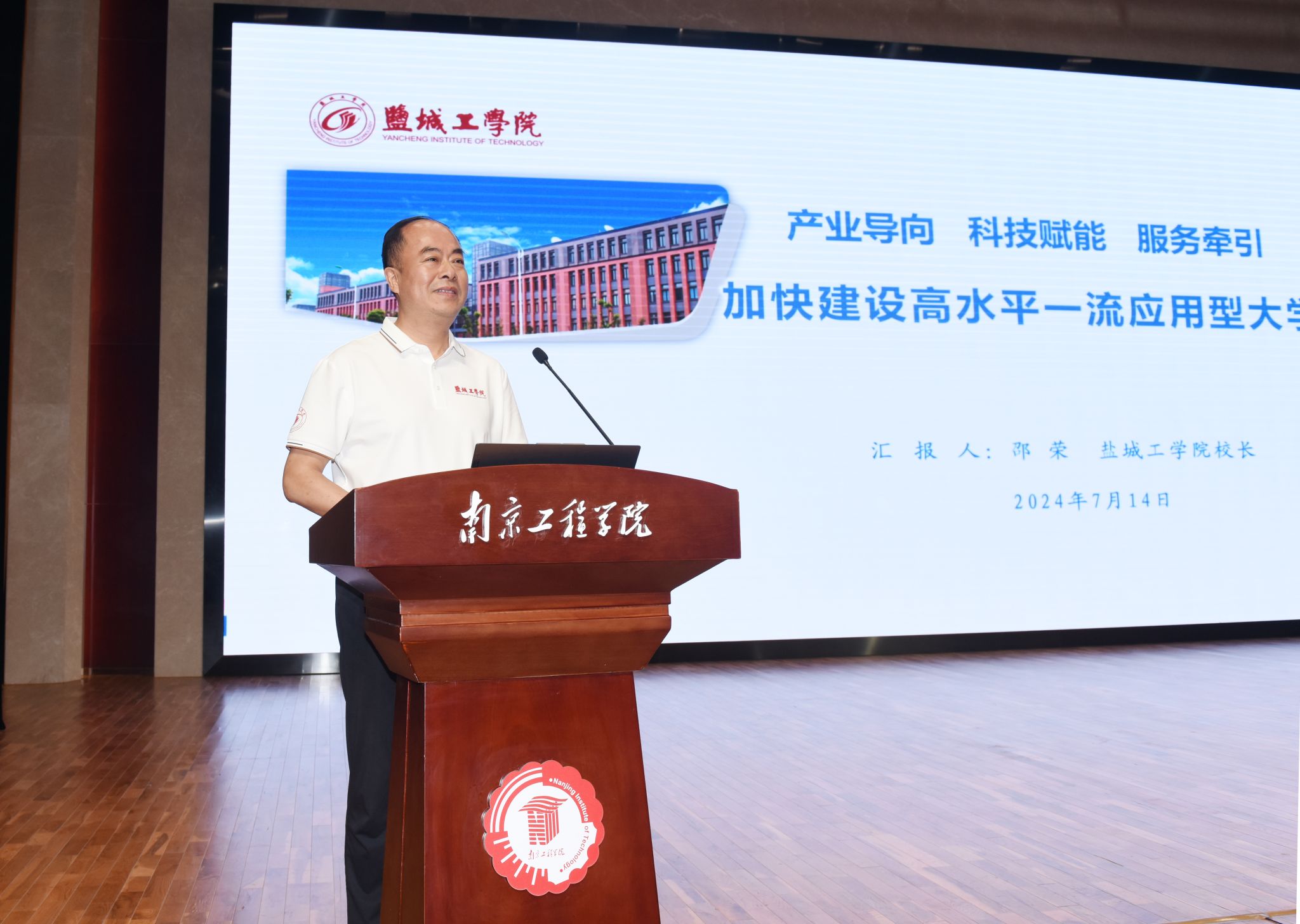 7月14日上午,江苏一流应用型本科高校发展研讨会在科创园天印会议中心学术报告厅召开。此次研讨会由江苏省教育厅指导、江苏省高等教育学会应用型本科院校研究会主办、我校承办,邀请到120余名来自全省40余所应用型本科高校的校领导及相关职能处室负责人齐聚天印湖畔,共同探讨新时期一流应用型本科高校的建设与发展。