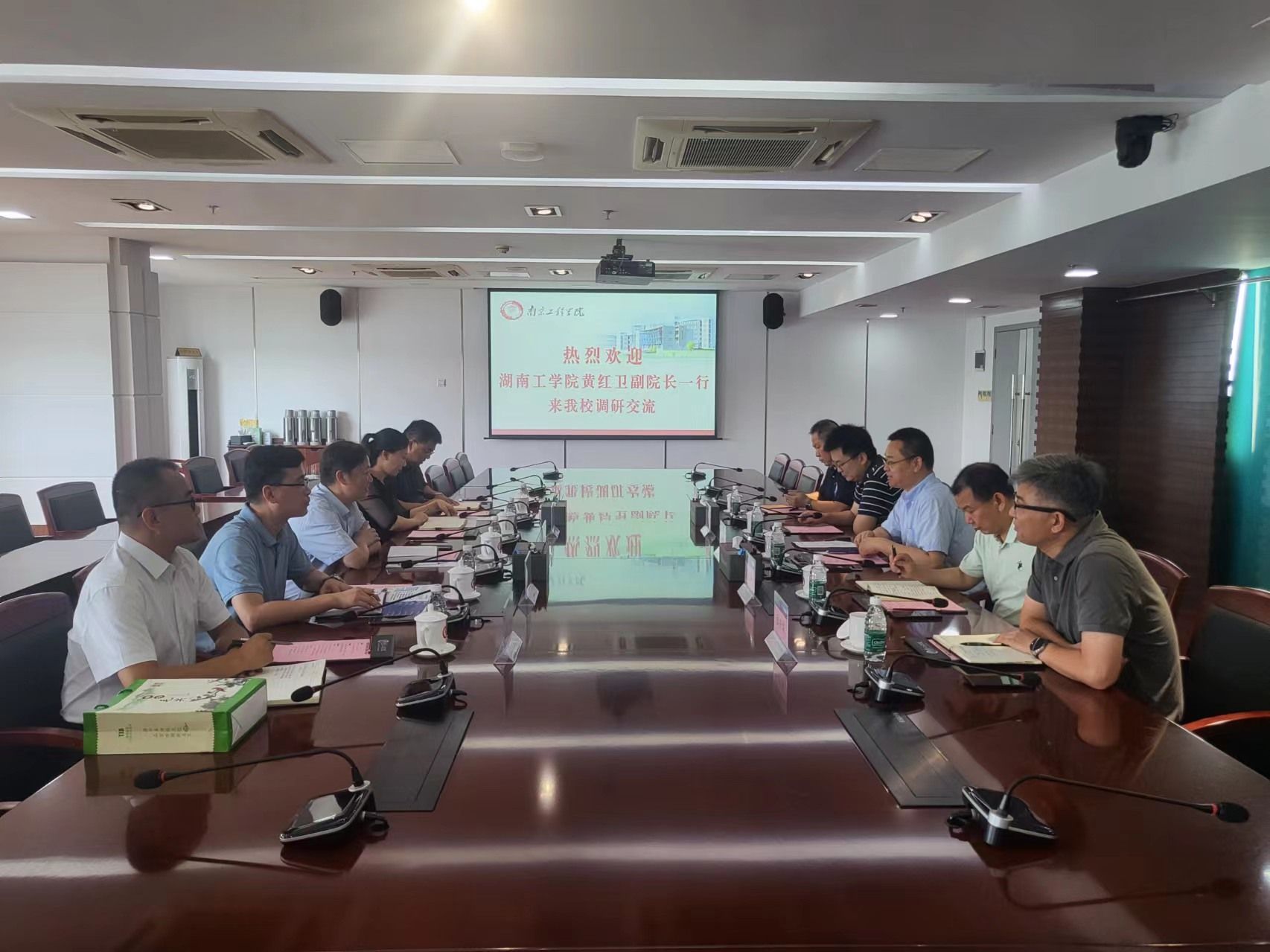 7月18日上午,湖南工学院党委委员、副校长黄红卫一行来校调研交流。党委常委、副校长陆华良热情接待了来宾并座谈。