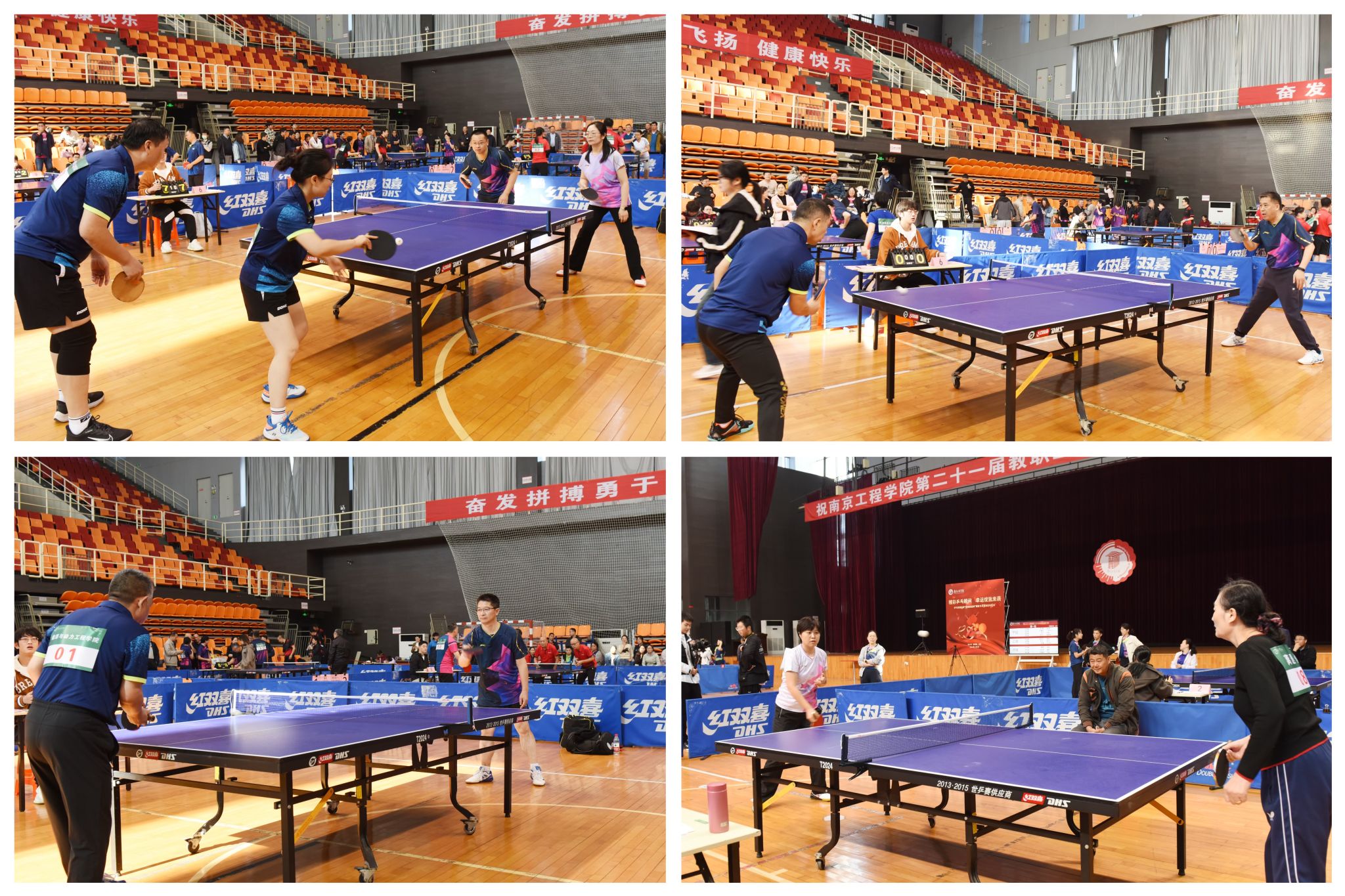金秋送爽,丹桂飘香。11月2日,我校第二十一届教职工乒乓球团体赛在天健苑﹒体育中心主馆拉开帷幕。本次赛事由校工会与体育部联合主办,吸引了21支代表队、230余名教职工同台竞技,共享乒乓运动的快乐。校领导孙爱武、陆华良、张玉清、朱松青参加活动。