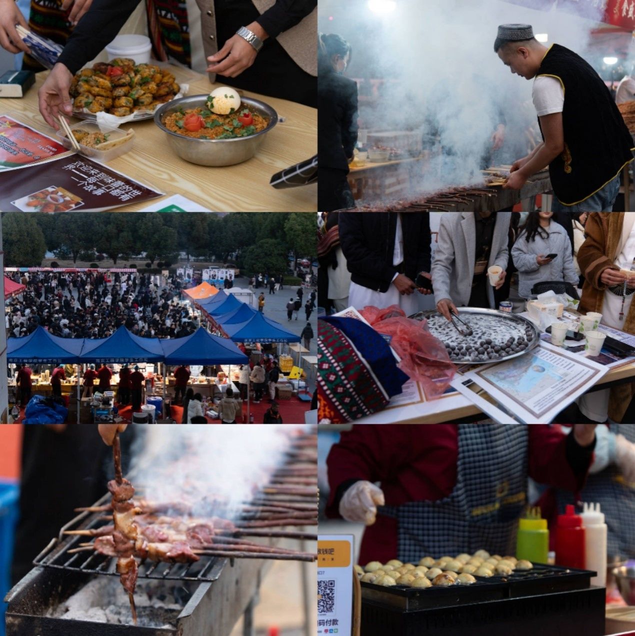 此次活动增设的美食街和鹭鸟集市也深受同学们的喜爱。水果捞、藕粉、手工艺品……各式各样的摊位上摆放着琳琅满目的商品、小吃,吸引着大家穿梭其中,沉浸式感受节日氛围。