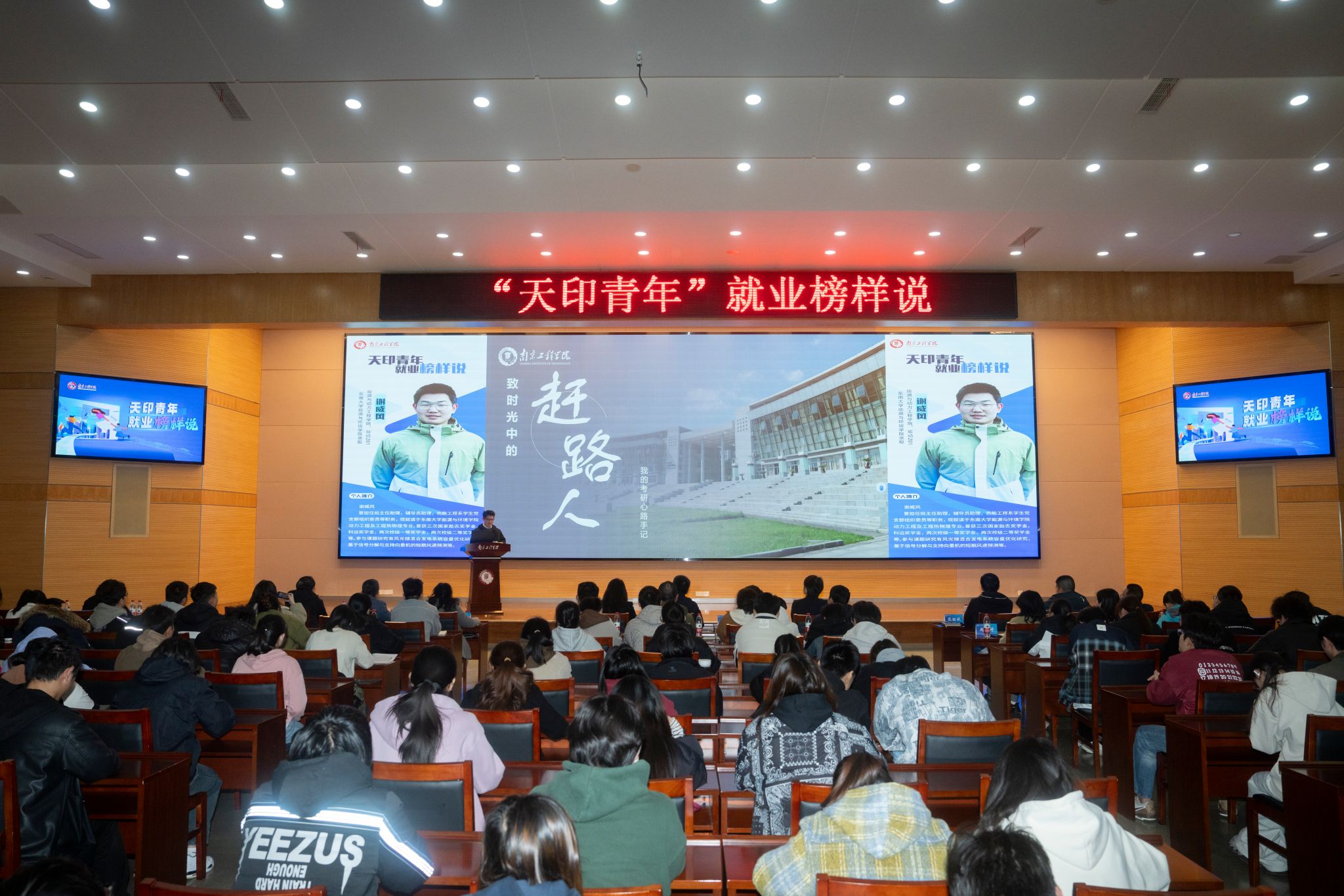 戴伟、朱琳、陆子豪三位辅导员老师,深入剖析就业榜样成长轨迹,鼓励同学们以优秀朋辈为参照,探寻适合自身的发展路径。交流互动中,同学们踊跃提问,榜样耐心解答,现场气氛热烈。