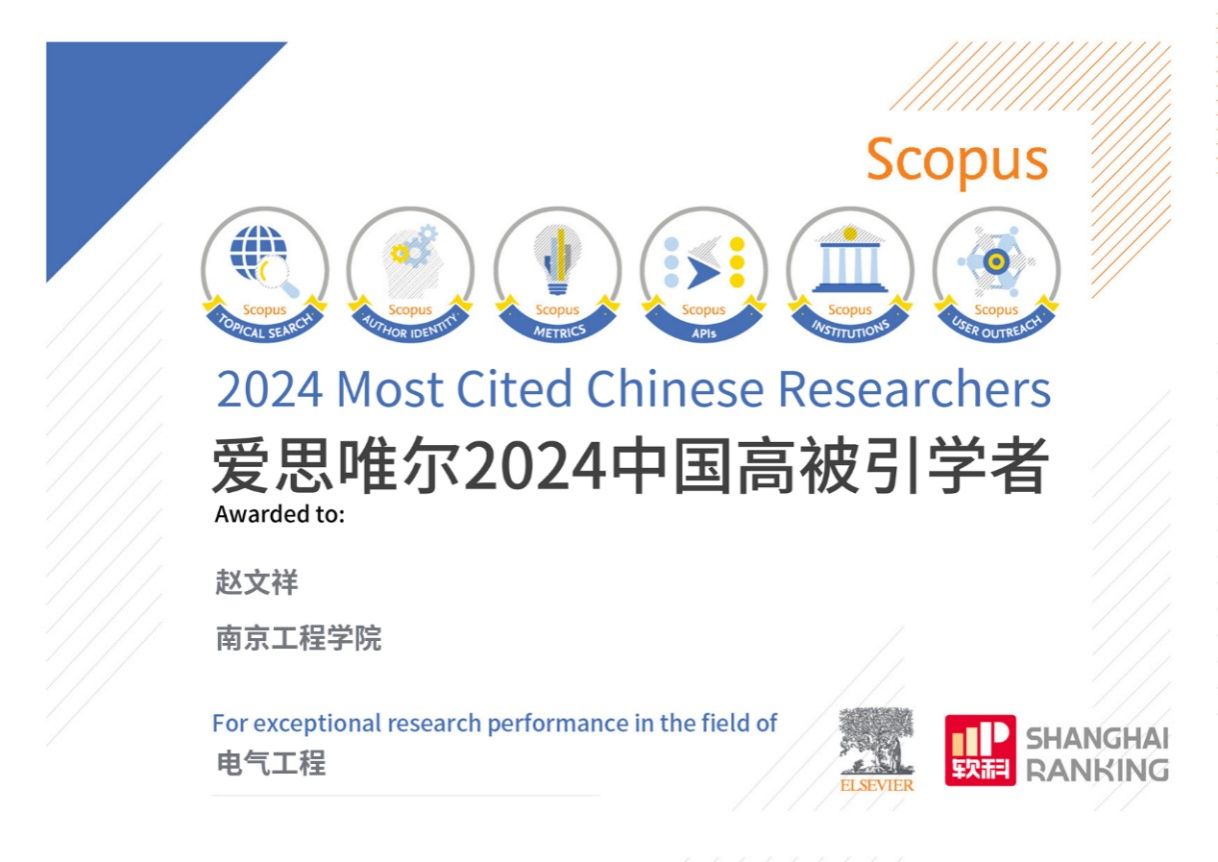 近日,爱思唯尔(Elsevier)正式发布2024“中国高被引学者”(Highly Cited Chinese Researchers)榜单,我校赵文祥教授成功入选。