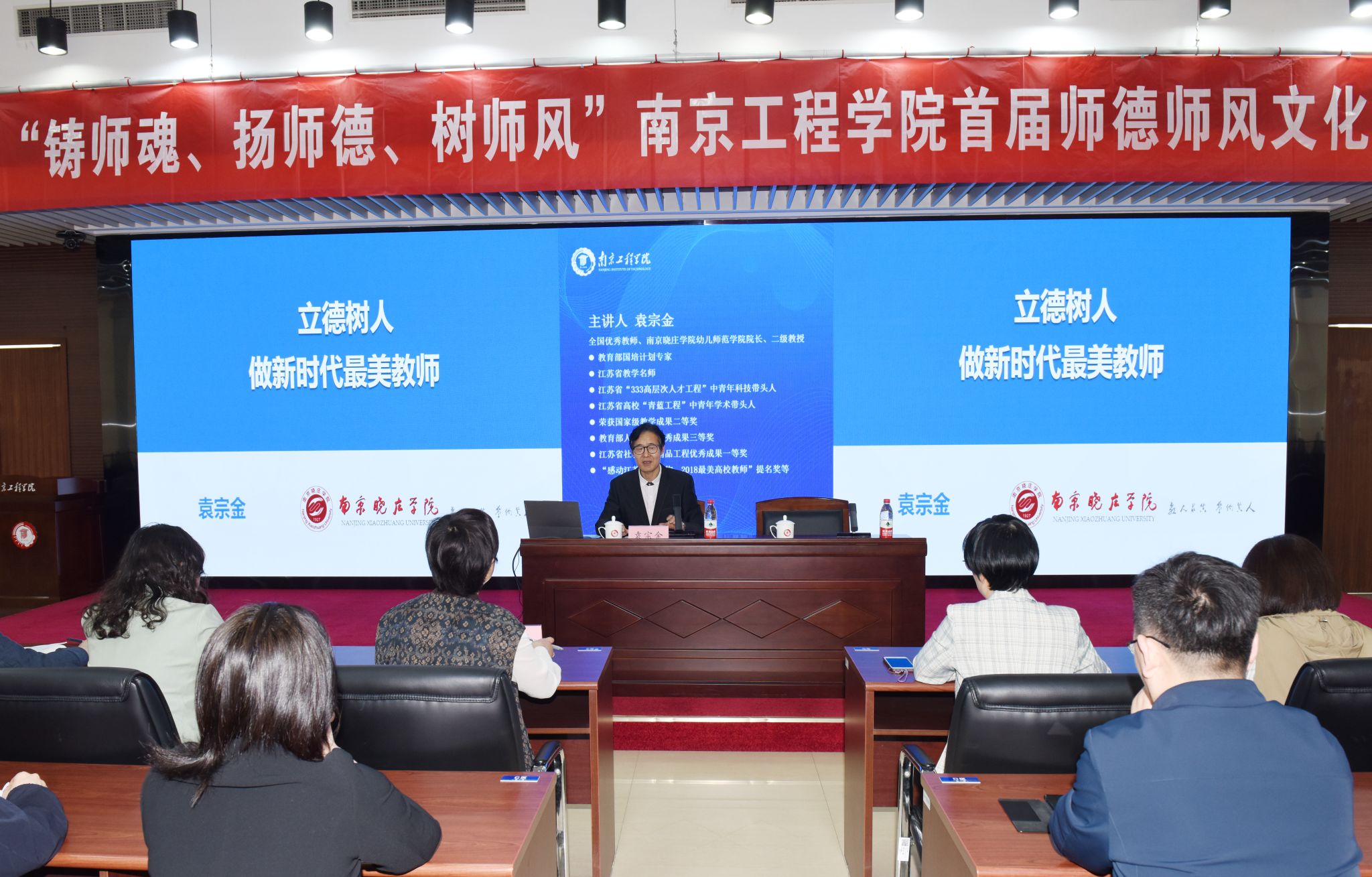4月16日下午,我校师德师风专题讲座在至勤楼·行政中心二楼多功能厅举行,全国优秀教师、南京晓庄学院幼儿师范学院院长袁宗金教授应邀作专题报告。党委常委、人事处处长张焱主持报告会,各二级基层党组织负责人、教育教学单位教师代表等150余人参加活动。此次活动也是我校首届“师德师风文化月”系列活动的重要组成部分,旨在通过专家讲授、示范引领,营造见贤思齐、崇德尚教的校园文化生态。