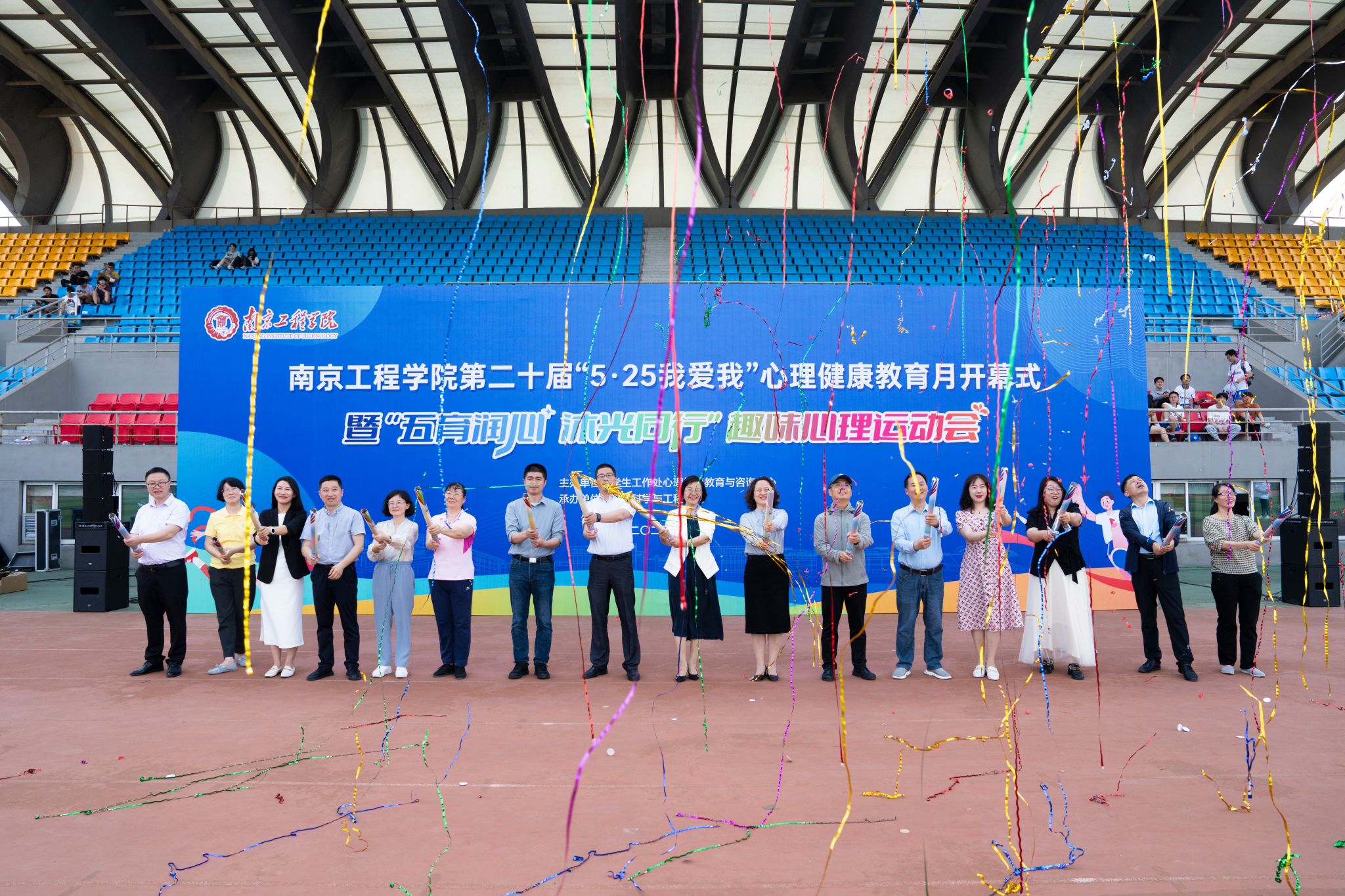5月14日下午,我校第二十届“5·25我爱我”心理健康教育活动月开幕式暨“五育润心 沐光同行”趣味心理运动会在体育公园举行。此次活动由学生工作处主办、材料科学与凯发承办。党委常委、副校长汪群出席开幕式并致辞,学生工作处负责人、各学院学生工作负责人、心理辅导员以及百余名学生代表参加活动。