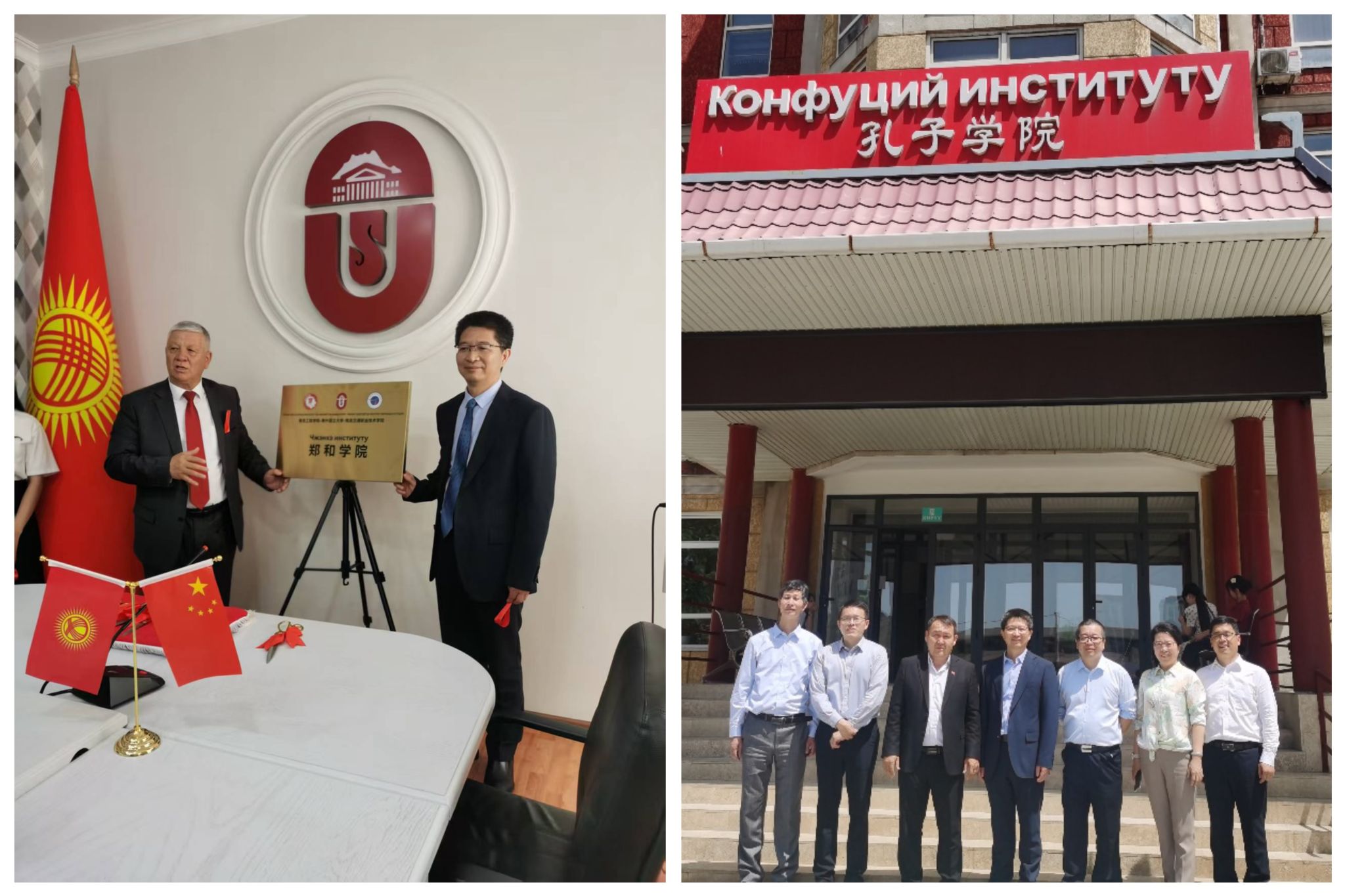 5月16日,代表团访问奥什国立大学,出席 “吉尔吉斯斯坦奥什郑和学院”揭牌仪式,并与该校共同制定 “2+2”联合培养项目录取标准。这不仅为郑和学院招生工作确立规范依据,也为保障生源质量、提升教育教学水平夯实基础,标志着学院建设迈入实质性推进阶段。