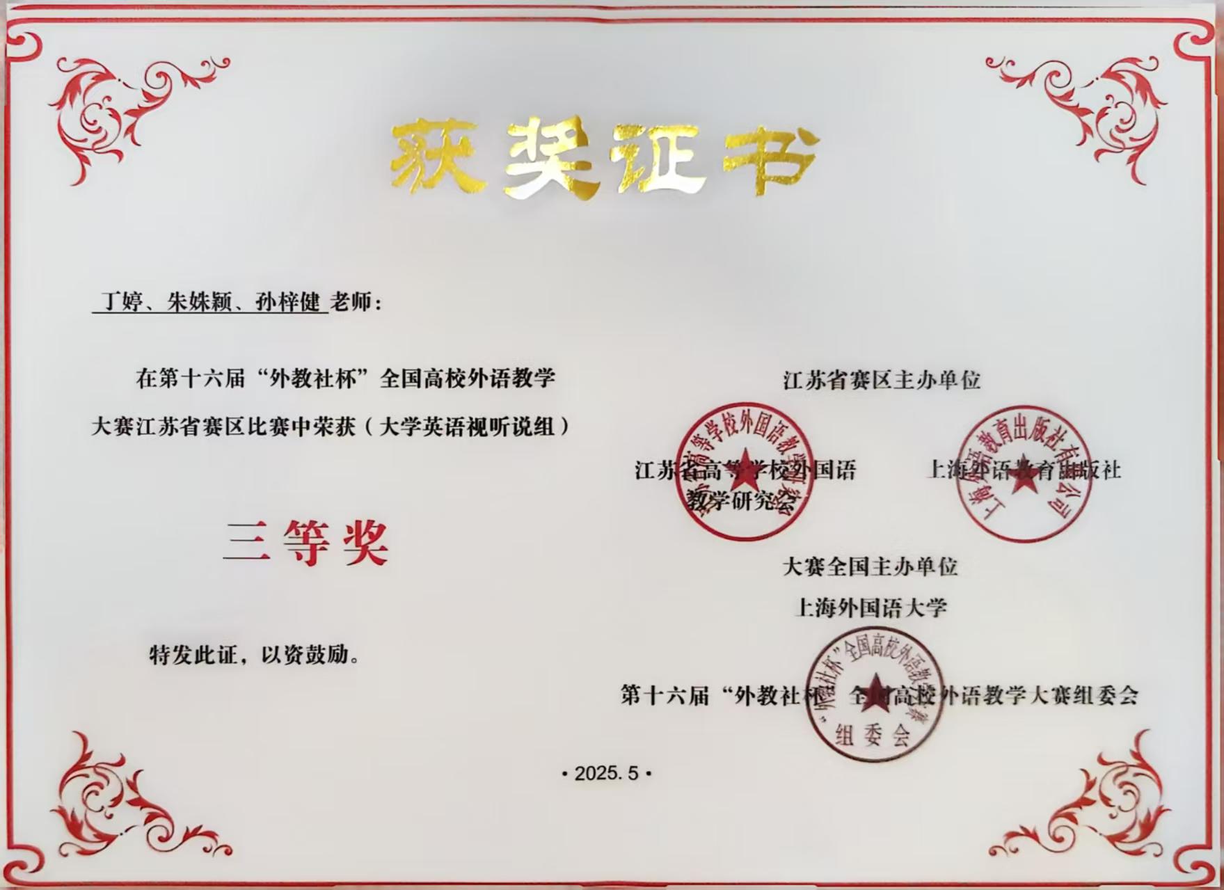 我校教师团队在第十六届“外教社杯”江苏省赛区决赛中取得好成绩