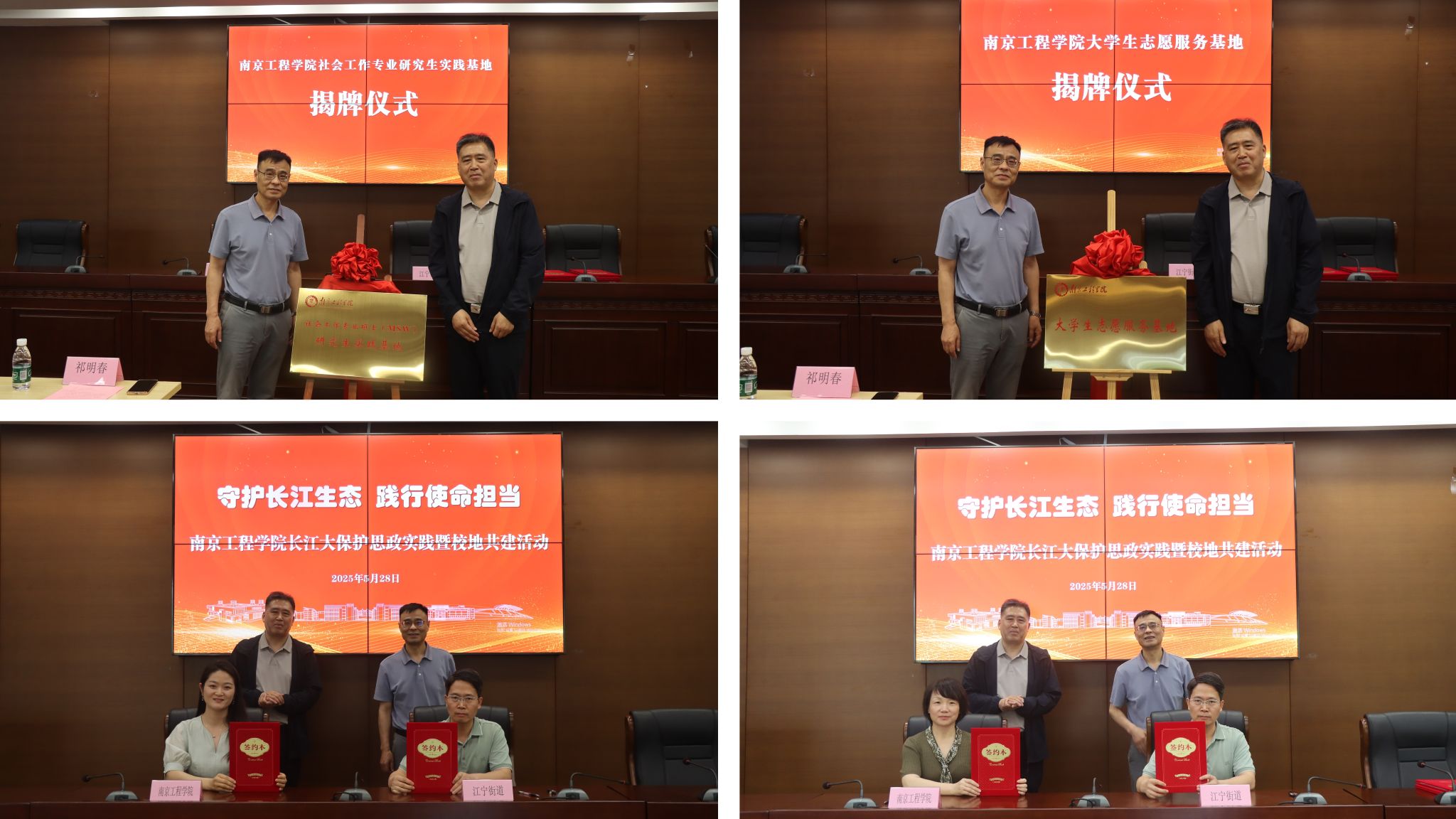 在与会人员的见证下,张玉清与祁明春为“凯发k8官网大学生志愿服务基地”和“凯发k8官网社会工作专业研究生实践基地”揭牌。江宁街道党工委分别与校团委、马克思主义学院签署校地共建协议,将充分发挥高校人才优势和地方实践资源,推动思政小课堂与社会大课堂深度融合,让青年学子在长江生态保护的生动实践中厚植家国情怀。