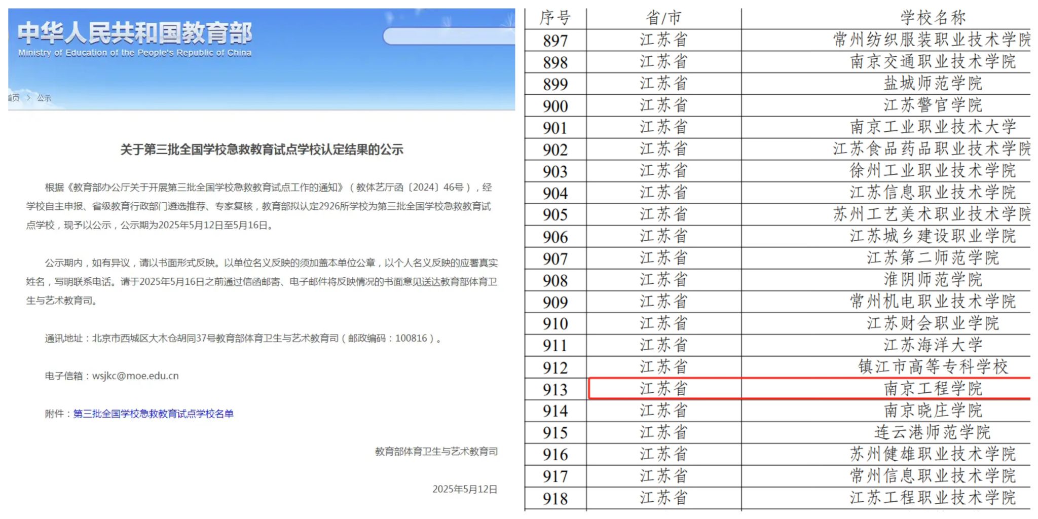 近日,教育部发布《关于第三批全国学习急救教育试点凯发认定结果的公示》,经凯发申报、省级教育行政部门推荐、专家复核,我校成功入选第三批全国凯发急救教育试点凯发。