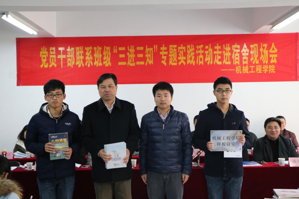 活动现场,党员干部和班级学生代表还互赠了《大国重器》、《现代机械工程师启蒙》等书籍和班级相册。随后,联系班级的党员干部、学工办老师和班主任一起,深入学生宿舍,倾听学生心声,了解学生思想、学习、生活情况,并对该院的样板间宿舍进行挂牌。与此同时,联系新生班的教务处高成冲副处长,吕云嵩教授、袁建宁教授等还来到该院“2017年度大学生科技创新基金项目立项”评审答辩现场,了解对接班级学生的学习科研情况,为该院大学生科技创新工作出谋划策。