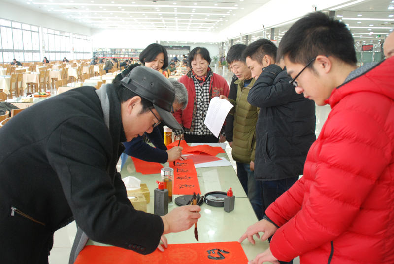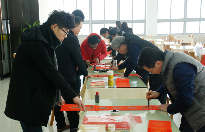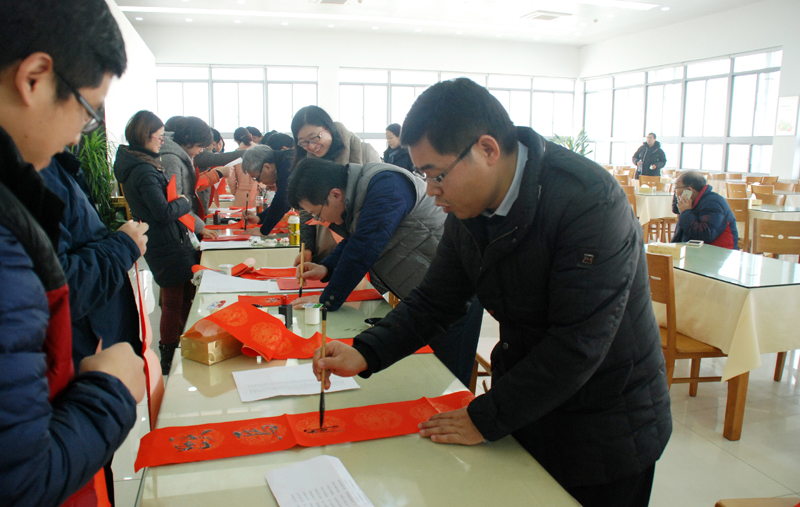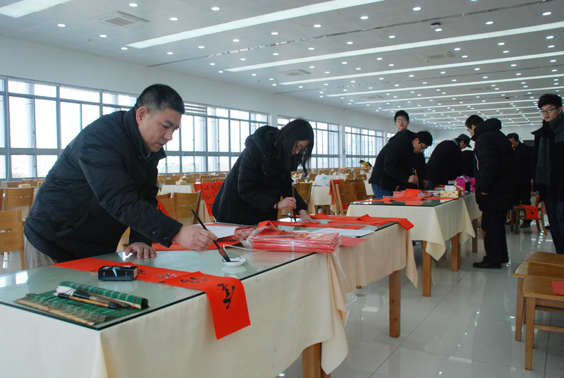 农历新年已经进入倒计时,为营造欢乐祥和喜庆的节日气氛,让广大教职工能切身感受到中国传统文化的气息,1月11日中午,我校书画摄影协会和工业中心分工会共同组织开展了“迎新春·写春联·送祝福”主题活动。活动安排在教工餐厅,吸引了许多老师们前来驻足观看,大师们挥毫创作,为老师们奉上墨宝。一幅幅充满喜庆、吉祥、祝福的对联在书法老师的手中随笔而出,一幅幅鲜红的对联在大家的手上传递。短短三个小时,书法老师就写了将近四百幅春联,受到了教工们的纷纷点赞。部分学生也参加了这项活动。