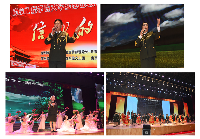 本台晚会由江苏省委宣传部理论处和我校团委联合策划、江苏战旗军旅文工团和我校大学生艺术团共同演绎。据悉,江苏战旗军旅文工团是由红军、新四军、八路军的后代及转业军人、退休干部组成的公益性文工团,平均年龄超过60岁。他们先后深入高校、部队、机关、企业演出80多场,深受好评。