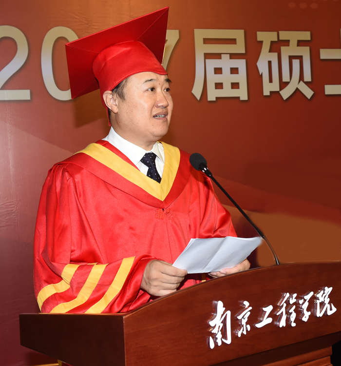 研究生导师李军代表全体导师向2017届毕业研究生送上了希望和祝福,希望同学们不管走到哪里都要有梦想,保持积极向上的精神状态;养成终身学习的习惯,实现自我超越;培养合作精神,助推自己勇往直前,成为母校的骄傲。