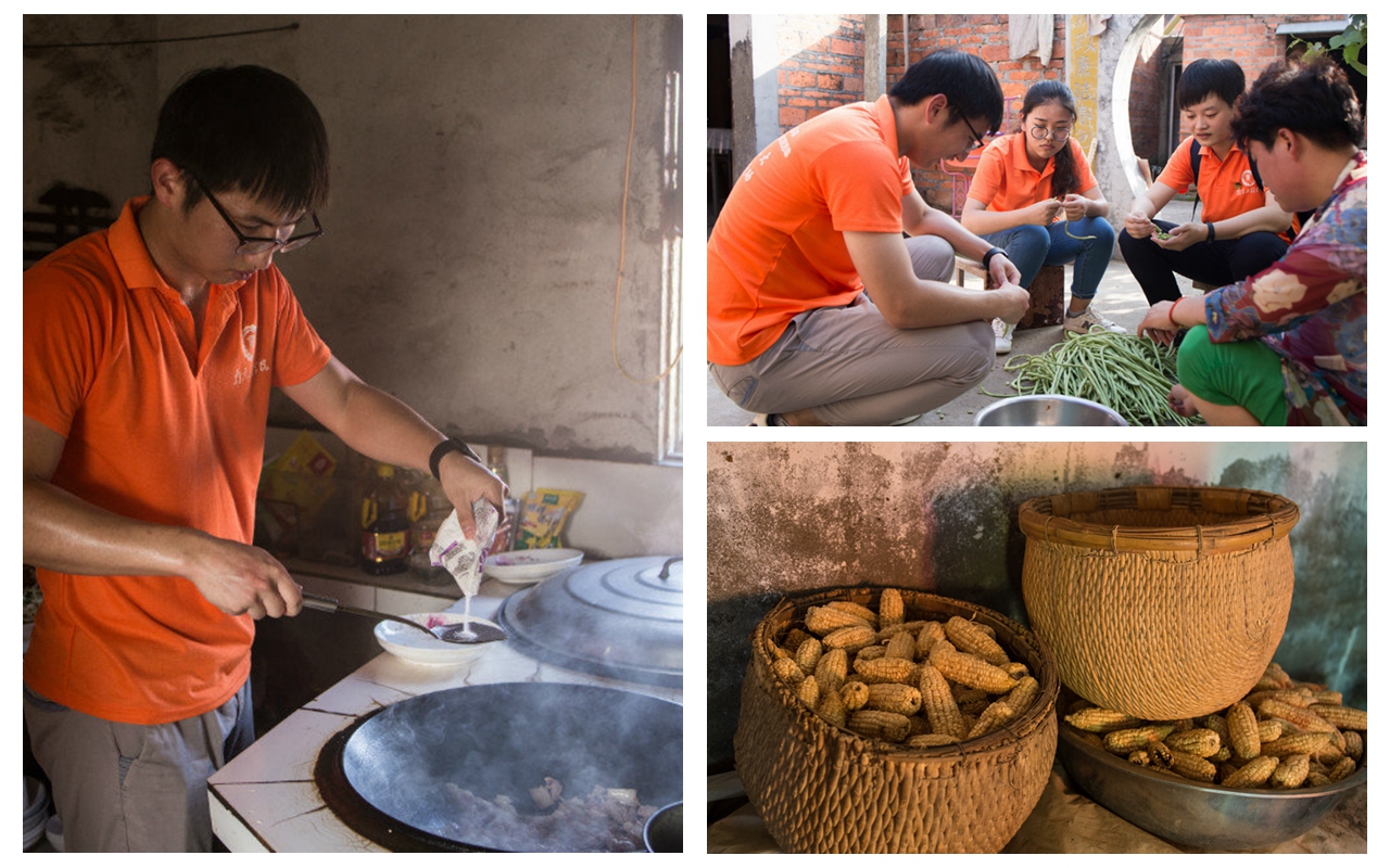 一方水土养一方人,一方山水有一方风情。为了和当地村民建立良好的情谊,团队成员前往农户家体验当地农村生活:有的队员系上围裙,深入厨房烹饪菜肴;有的队员搬起稻谷,喂养家禽;还有些队员,深入田地浇水施肥。当地质朴和善的劳动人民给团队成员留下了深刻的印象。