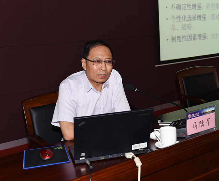 9月1日下午,教育部教育发展研究中心高教室主任、研究员马陆亭针对“高水平应用型工程大学建设”的主题,作了题为“‘新工科’建设与应用型大学发展”的报告。马陆亭阐述了大学发展与社会、生产等的相互关系,对应用型大学以及新工科的产生、发展进行了深入分析,尤其针对大学发展功能、分类必须增强的基本规律进行了系统的论证和讲解,提出了学科专业建设、人才培养内涵和新工科探索途径的基本要求和创新思路,使大家从本源上加深了对大学、学科、专业和改革发展的认识。
