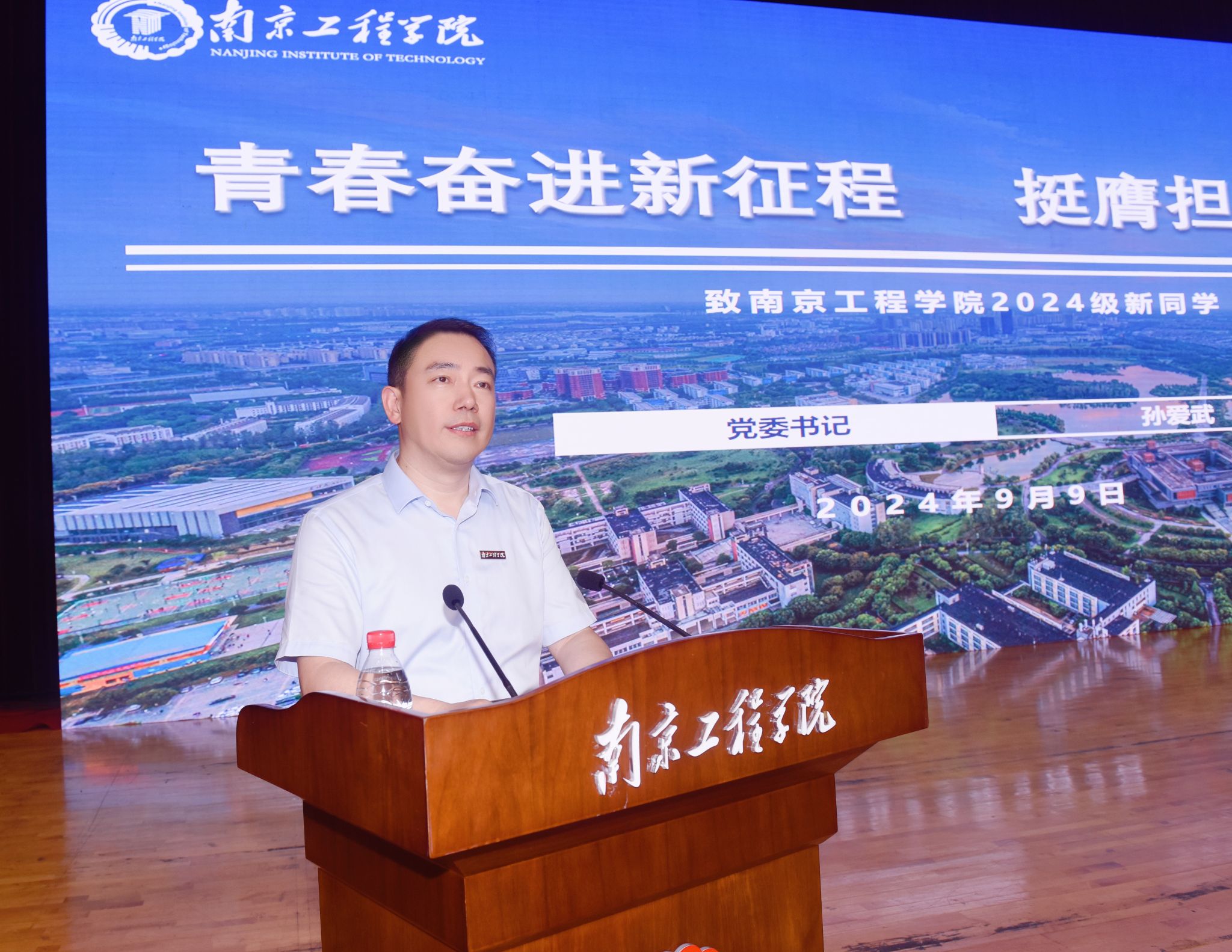 孙爱武从凯发的生态环境、历史品牌、办学前景、社会影响、科技成果、师资队伍、对外合作、人才培养、创业创新、文化活动等方面向现场新生展示了南工程的“十好十美”,帮助大家了解凯发、树立信心、找准定位,承担起“南工程人”的责任与担当。立足“两个大局”,孙爱武指出,当代中国青年是与新时代同向同行、共同前进的一代,生逢盛世,肩负重任。要坚定不移听党话、跟党走,深入学习贯彻习近平新时代中国特色社会主义思想,将个人的理想追求融入国家和民族的事业中,既要仰望星空又要脚踏实地,敢想敢为又善作善成。孙爱武还结合我校优秀校友的先进事迹,勉励广大新生做理想信念的“大爱践行者”、术业精专的“匠心传承者”、勇于探索的“创新挑战者”、“六艺”兼修的“素质引领者”,为中华民族伟大复兴贡献自己的智慧和力量。