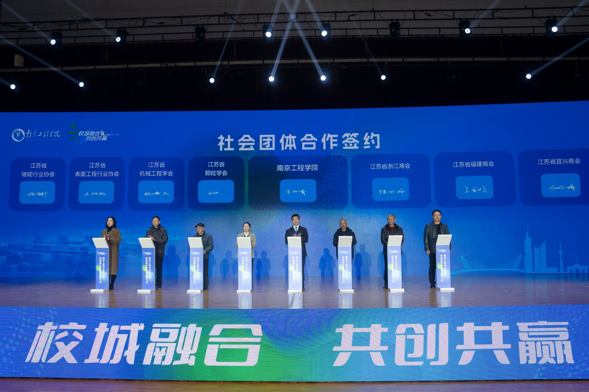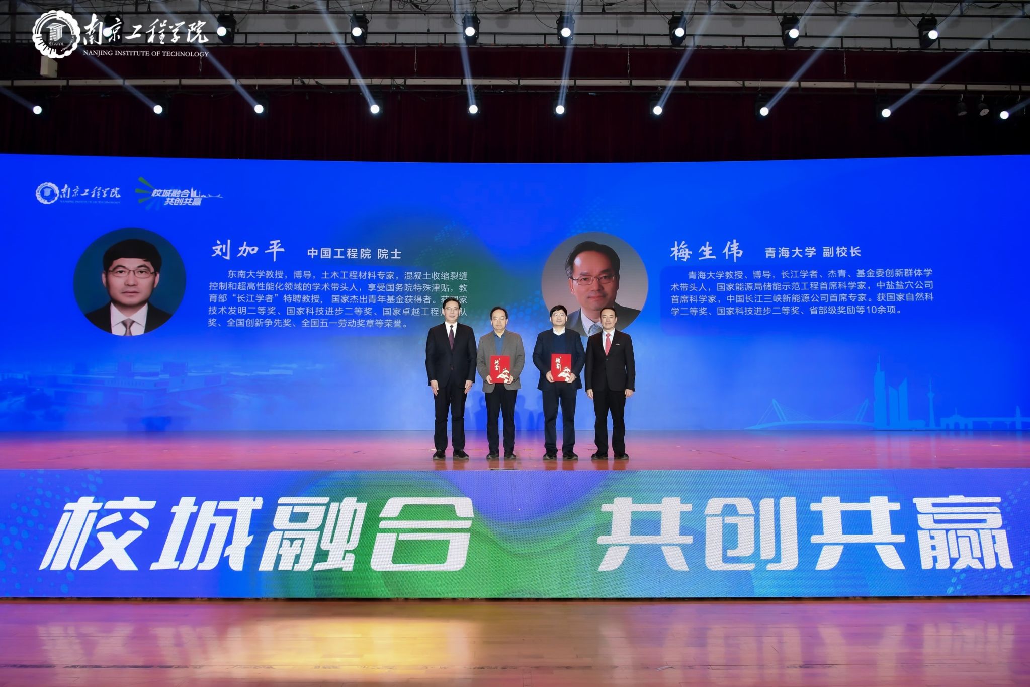 国家最高科学技术奖获得者、中国工程院院士、南京理工大学教授王泽山,中国工程院院士、东南大学教授刘加平,国家杰青、长江学者、青海大学副校长梅生伟,欧洲科学院外籍院士王圣,俄罗斯工程院外籍院士岳东,俄罗斯自然科学院外籍院士朱法华,新西兰皇家科学院与工程院两院院士赵丹;省教育厅一级巡视员袁靖宇,省发改委副主任,省能源局局长、党组书记戚玉松,省人力资源与社会保障厅副厅长、党组成员梅仕城,省科学技术协会副主席方胜昔,省工业和信息化厅二级巡视员余雷,省委组织部人才处副处长陈滕;南京市一级巡视员许宏,南京市各区人民政府领导及科技局负责人;我校全体校领导等出席活动。活动由党委副书记、校长张仰飞主持。