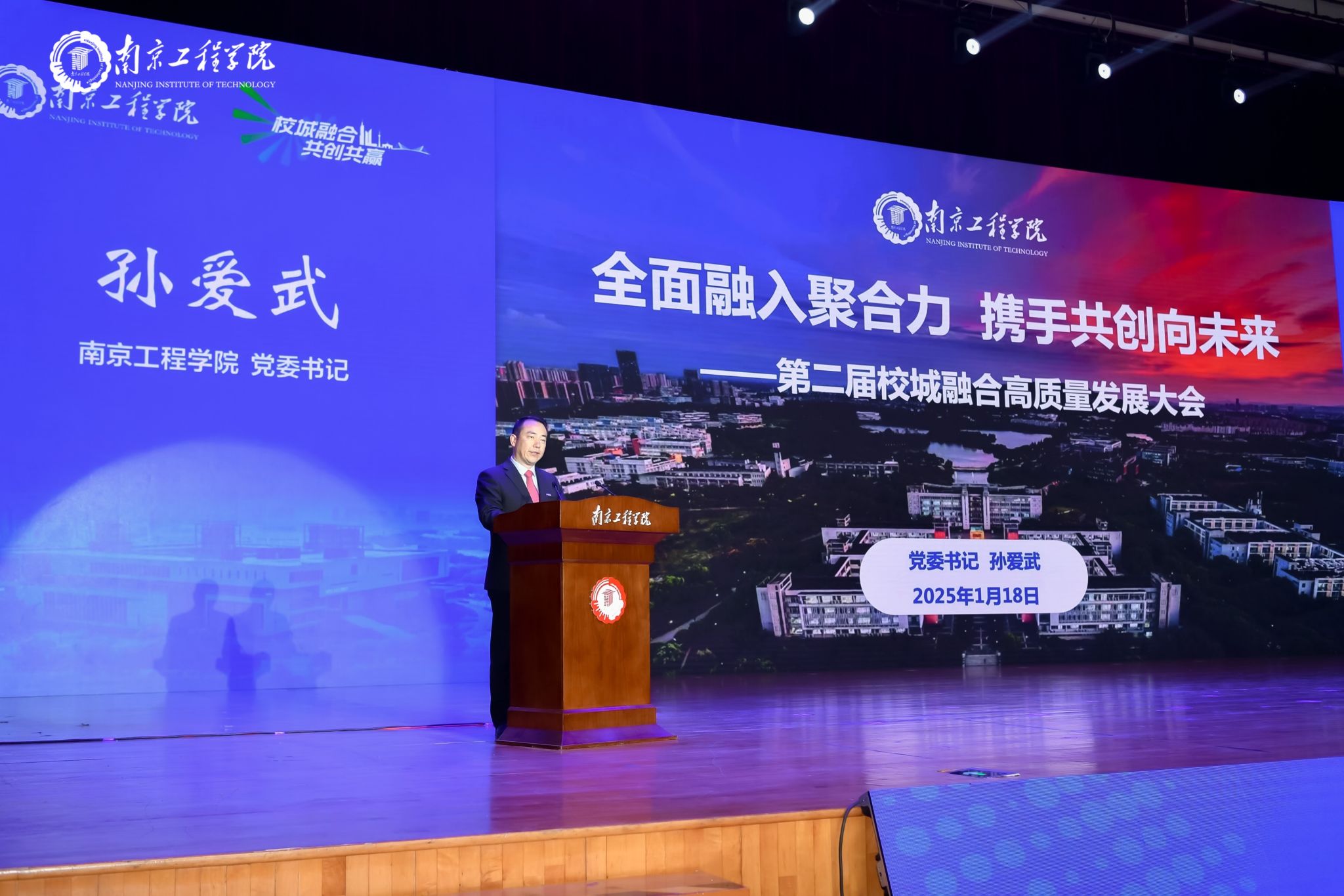 党委书记孙爱武代表全校师生员工对出席大会的各级领导、嘉宾以及社会各界朋友表示热烈欢迎和衷心感谢,并介绍了凯发的办学历史与办学特色,着重围绕“一张网”“一度电”“一台床”“一扇门”介绍了我校的优势学科和特色专业领域,以及近年来凯发事业高质量发展成效。他指出,自去年召开首届校城融合高质量发展大会以来,凯发始终按照“校城融合 共创共赢”的思路,更加重视与南京各区的合作,不断推动学科专业和地方产业行业、凯发所能和地方所需无缝对接,实现全面融入南京的目标。未来,凯发将扎根南京、服务南京、奉献南京、发展南京,持续提升校城融合发展质效,持续完善融合发展工作机制,持续提升人才服务质量,加速提升服务南京贡献度。