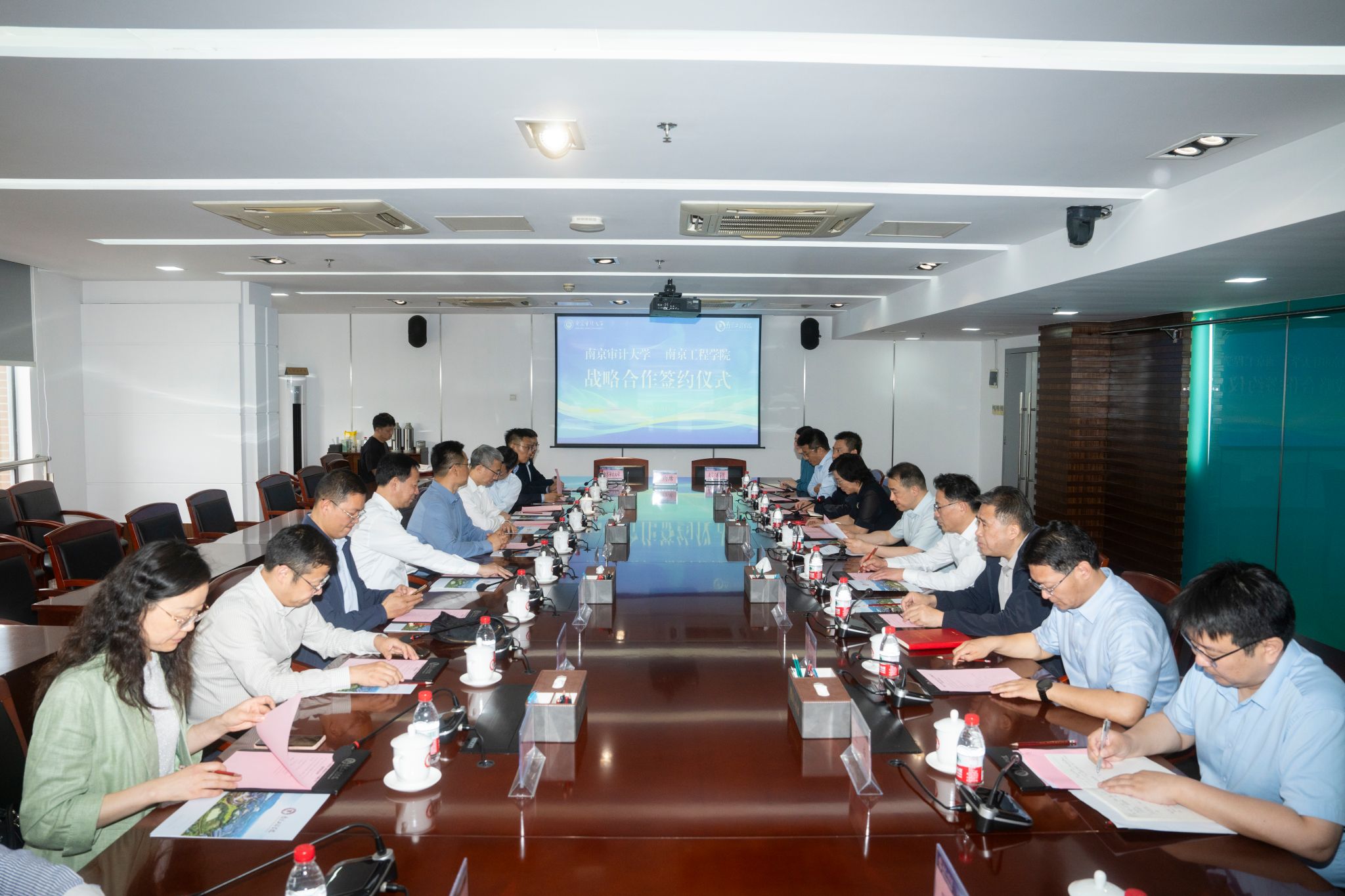 董必荣高度评价了我校的办学成就,对两校长期以来保持的友好情谊表示感谢。他介绍了南审以审计为品牌的学科体系和“特色、质量、国际化”的办学理念,提出两校作为行业特色高校,应立足“新文科+新工科”融合发展路径,在博士点建设、学科交叉研究、产教融合创新等领域构建协同发展学科生态圈。他强调,双方要以“文理交融、工管互促”为抓手,在服务国家战略需求中打造“硬核”学科优势,共同讲好中国审计故事与南工程“四个一”特色学科专业故事,探索教育链、产业链、人才链深度融合的创新模式,实现双向赋能、互利共赢的发展新格局。
